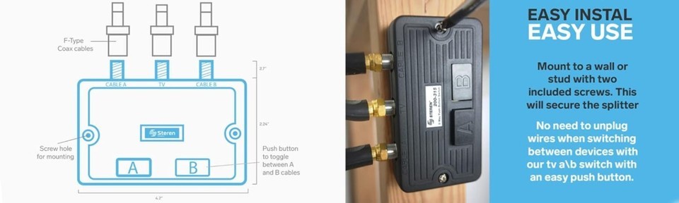 Easy Install Coax Cable Splitter & Manual AB Switch - Dual Device Solution