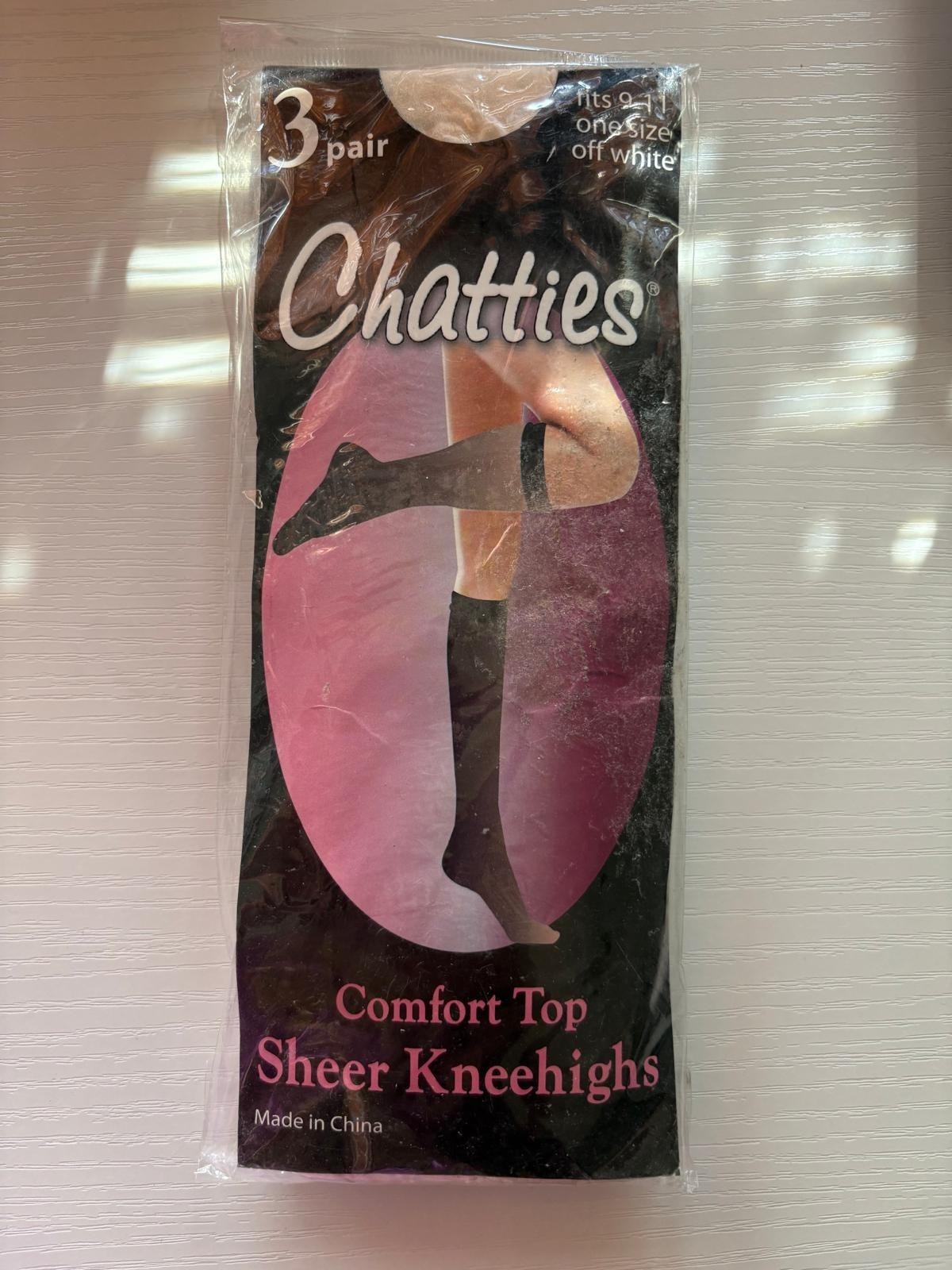 Chatties Sheer Knee Highs 3 Pairs Off White Nylon One Size 9–11 New Sealed