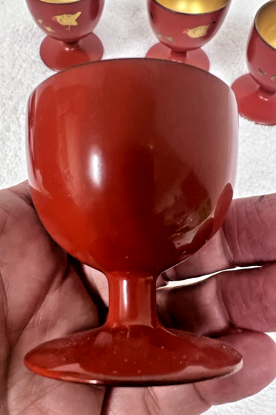 4 Vintage Asian Lacquerware Egg Cups w and 11 similar items