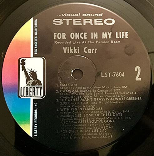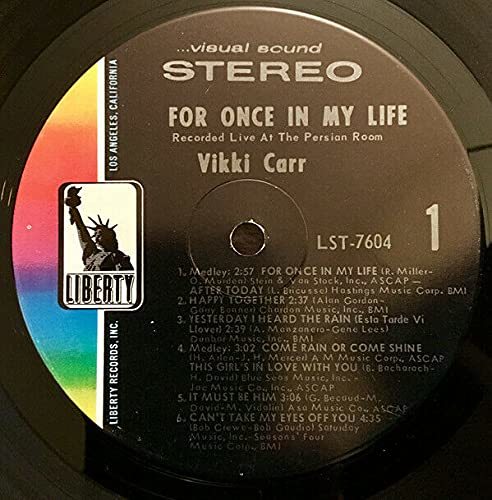 Vikki Carr - For Once In My Life - Vintage Vinyl LP 1969 Liberty LST-7604, NM! [