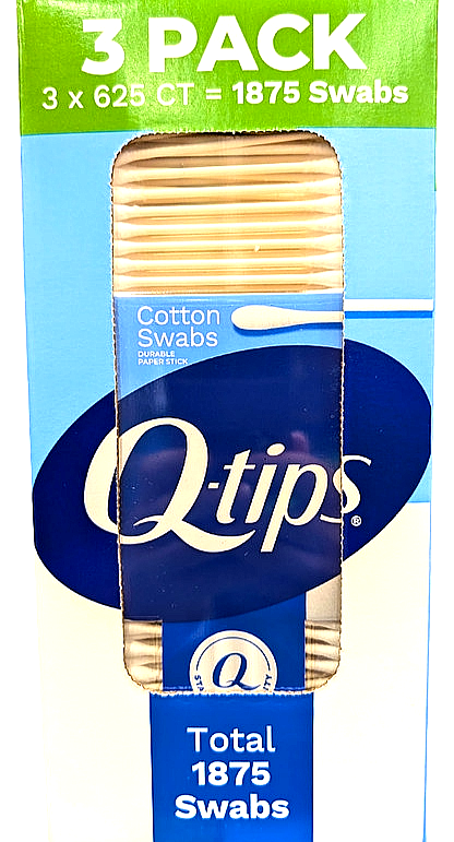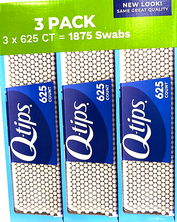 Qtips Cotton Swabs 3 Pack of 625 Count Total 1875 Swabs