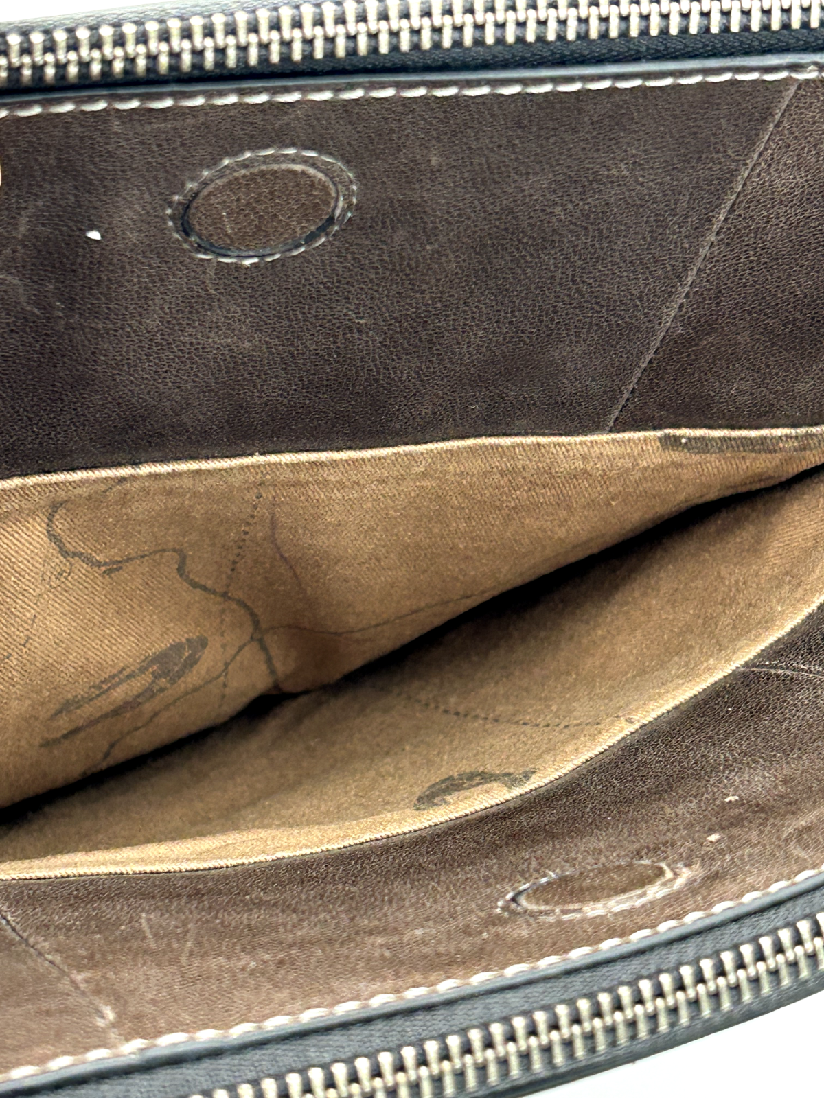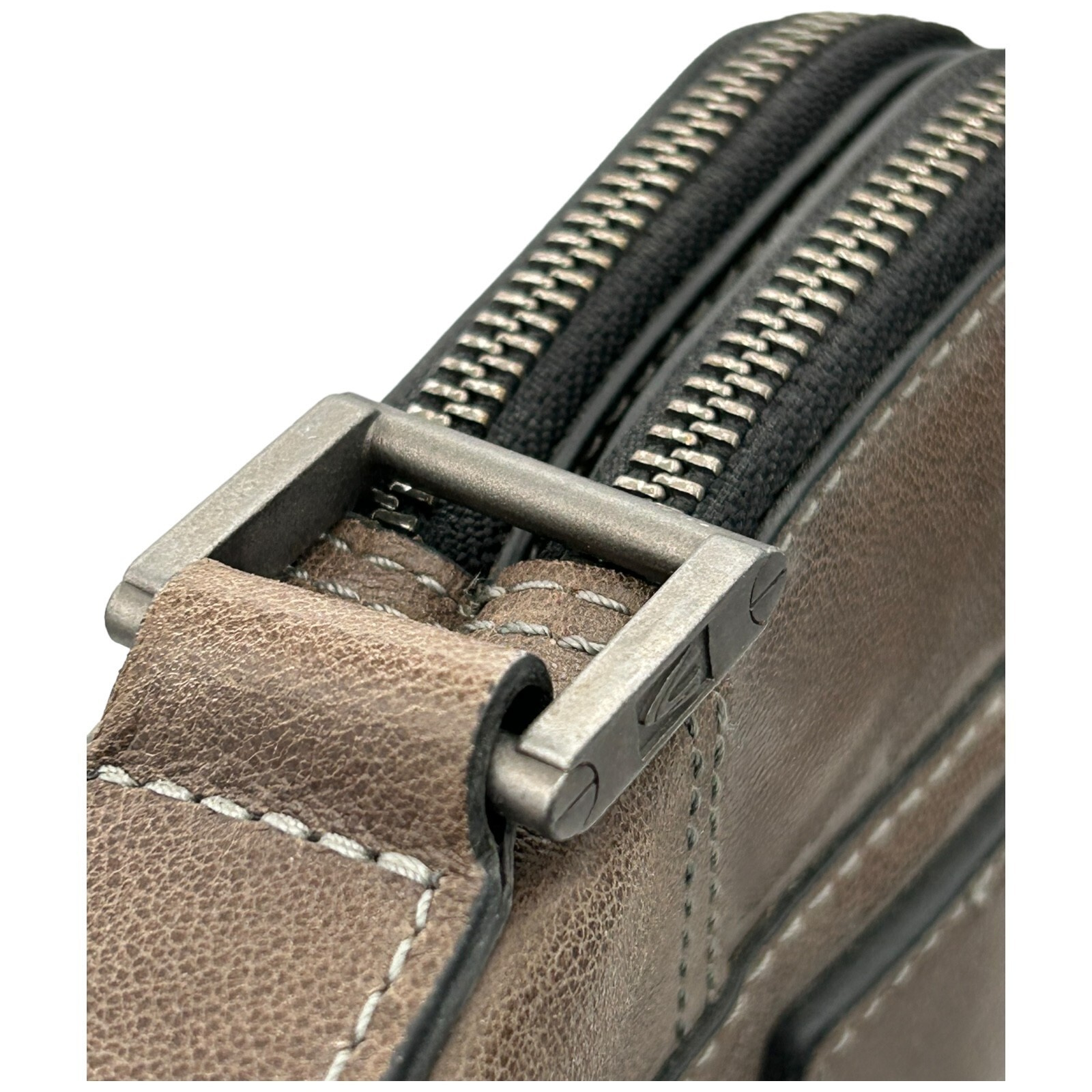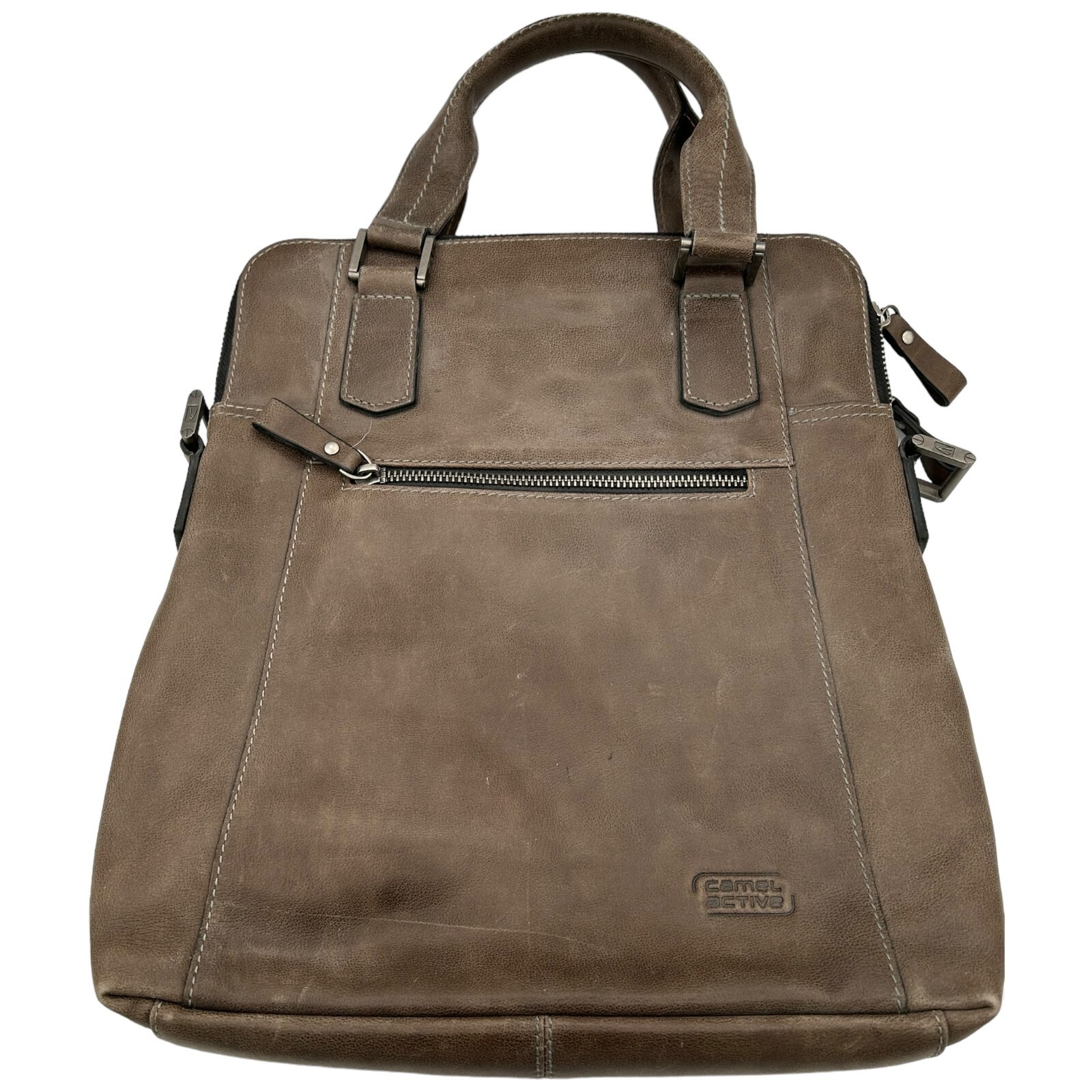 camel active malaysia chocolate leather bag vertical top zip 3 compartments - No carry strap.
