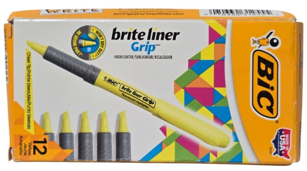 BIC Brite Liner Grip Highlighter Chisel Tip Yellow Ink 12 Pack - NEW in Box