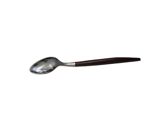 This teaspoon with a faux wood handle in good condition with light scratches consistent with normal wear and use. Never washed in a dishwasher.