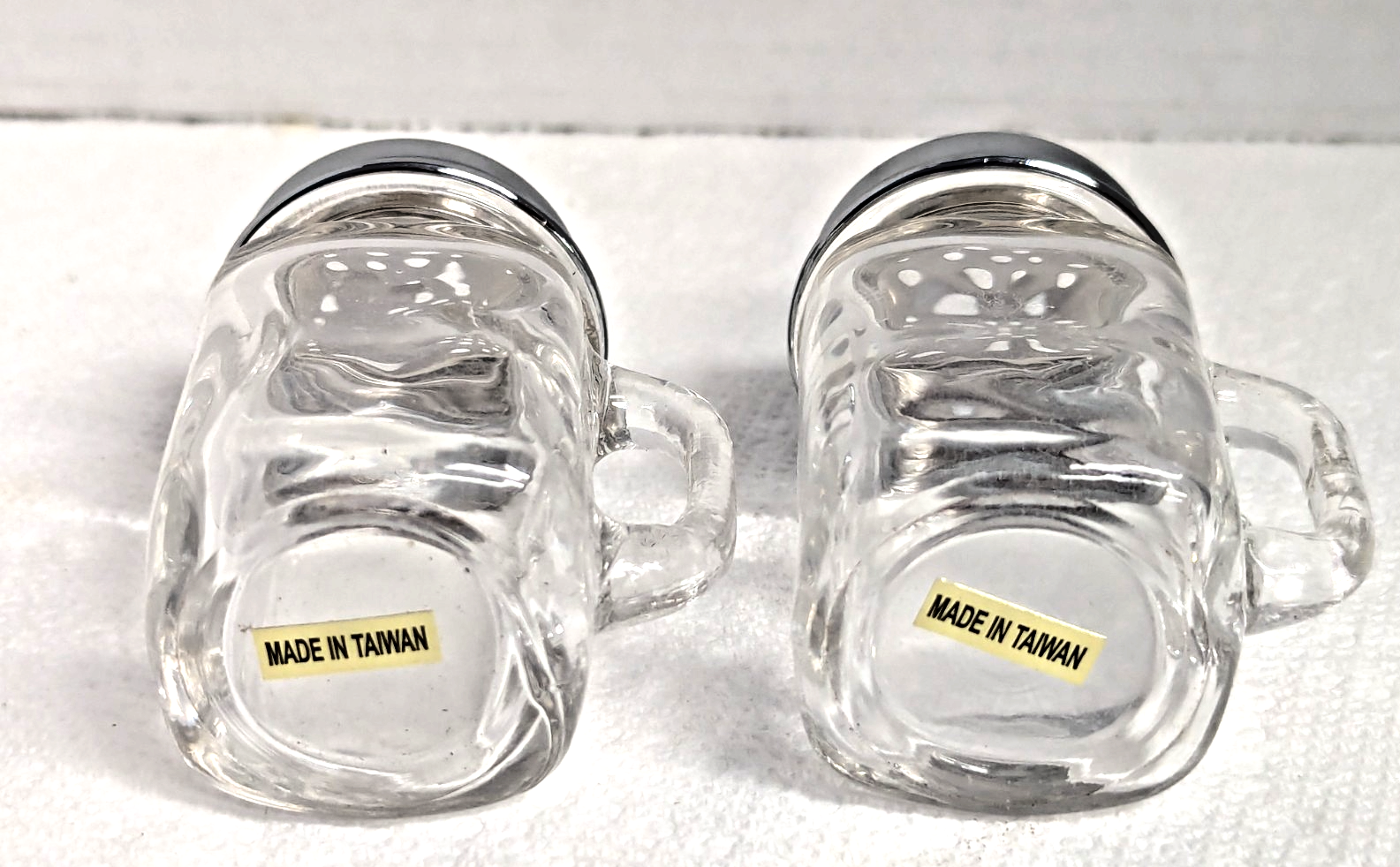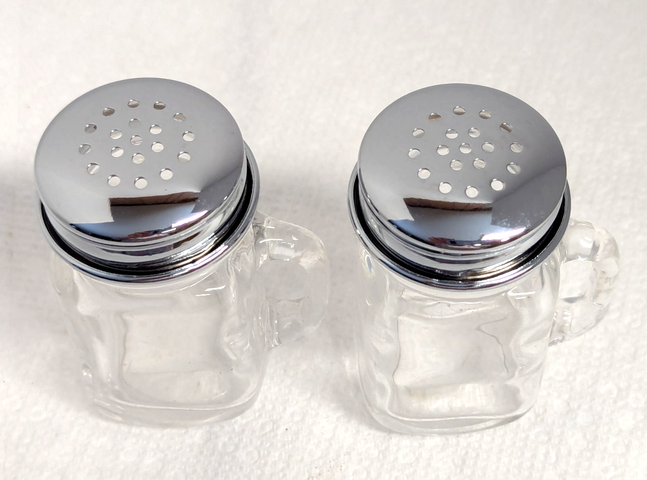 Mason Jar Glass Salt Pepper Shakers Metal Lids Glassware 2pc Kitchen Gift NEW