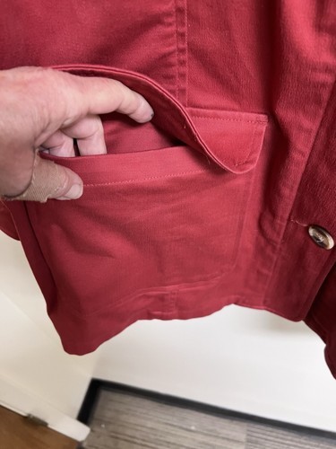 D Co Women's Brick Red Denim Over Coat Jacket SZ 1X Patch Pockets ( we think its a size 1x)
