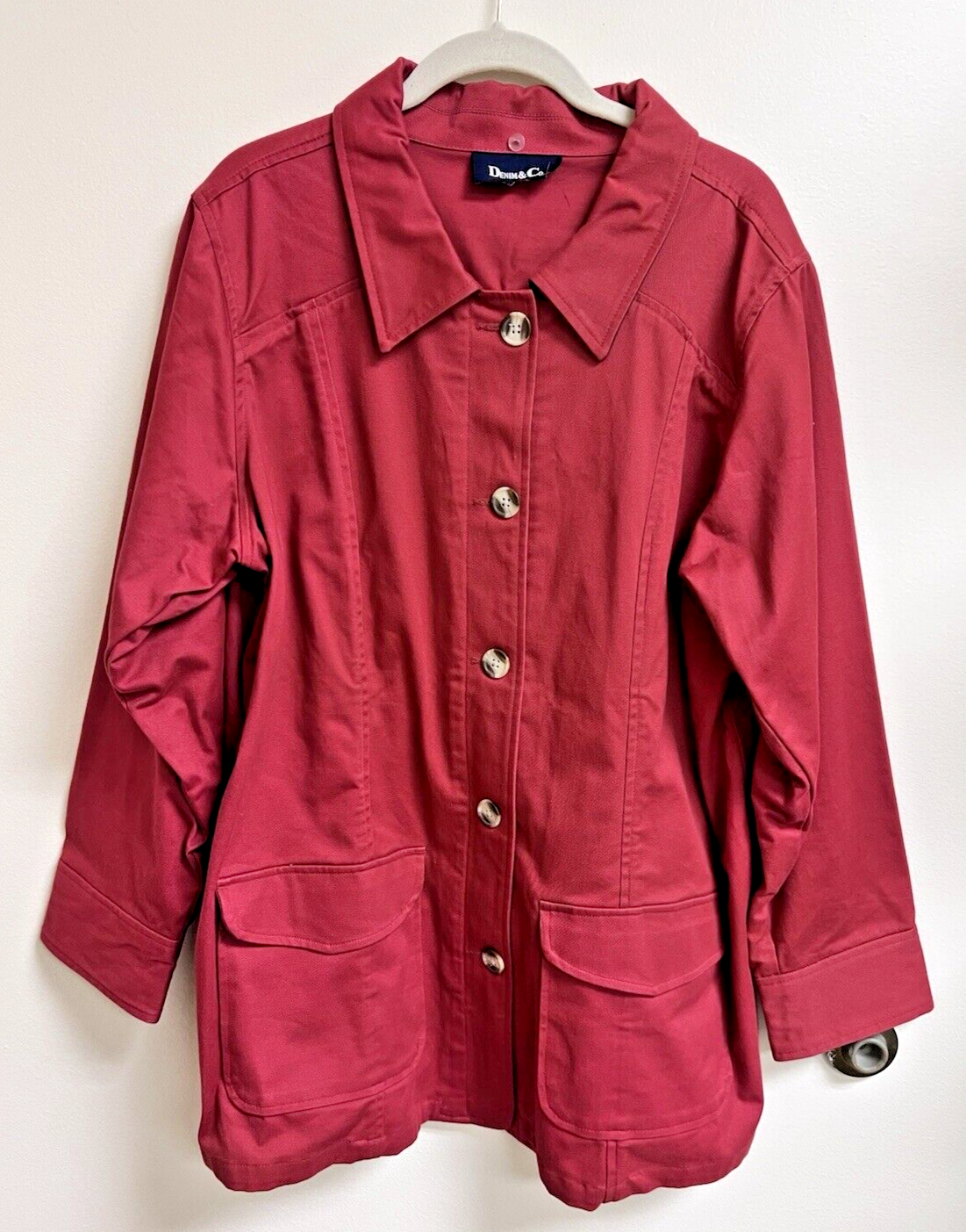 D&Co Women's Brick Red Denim Over Coat Jacket SZ 1X Patch Pockets