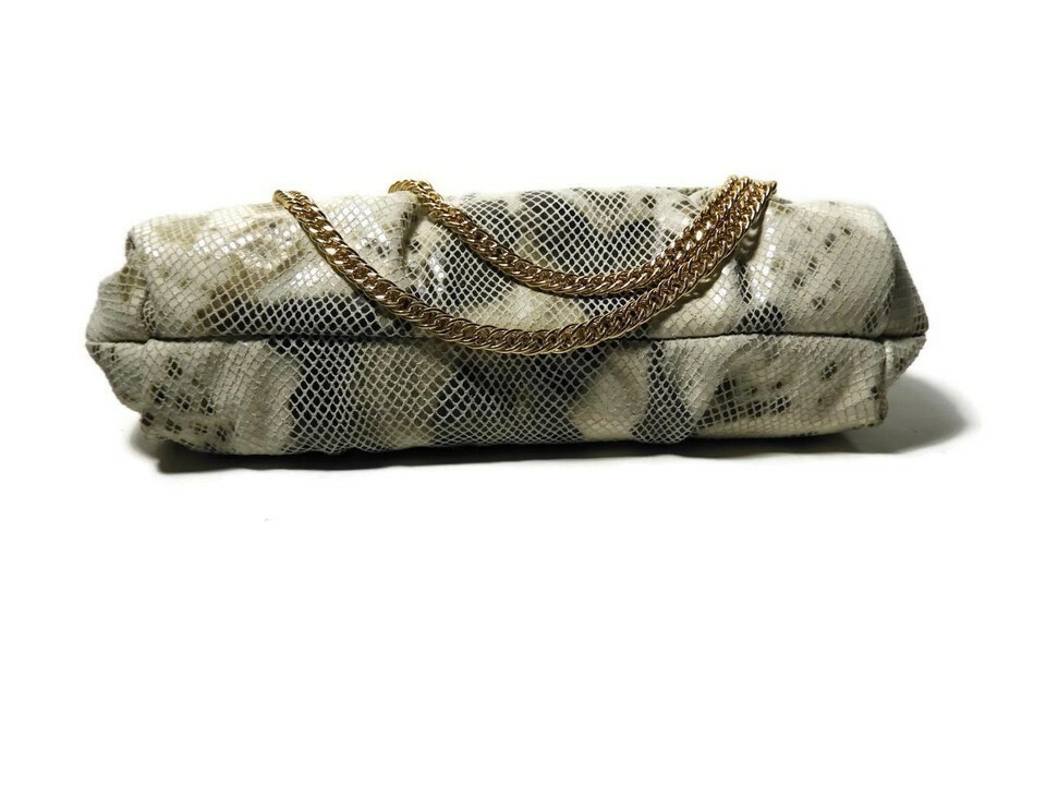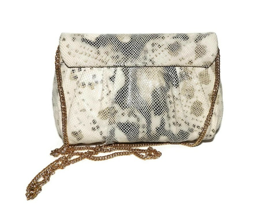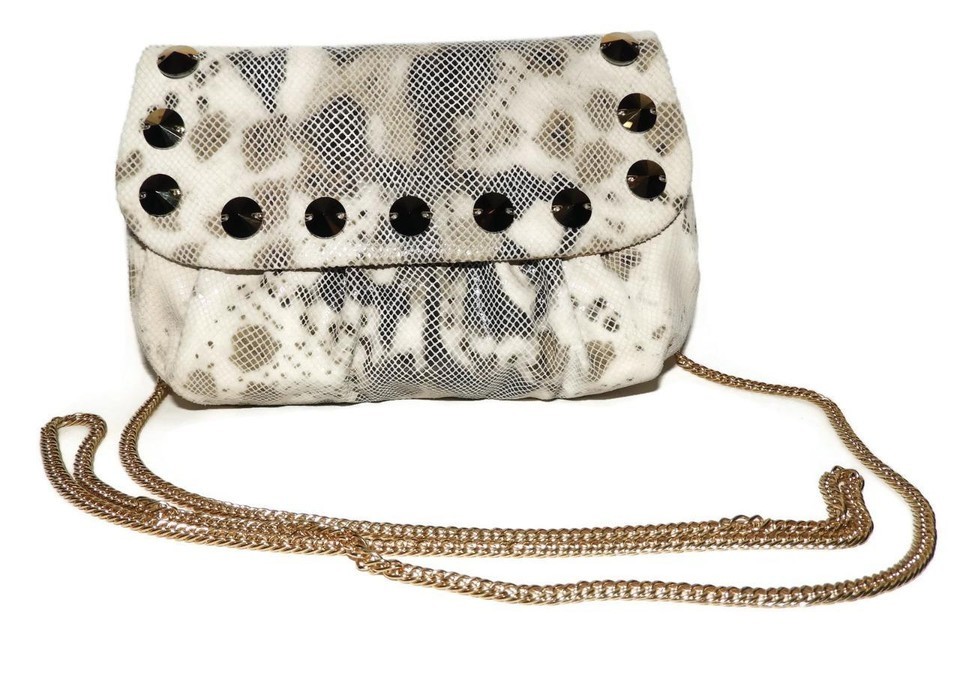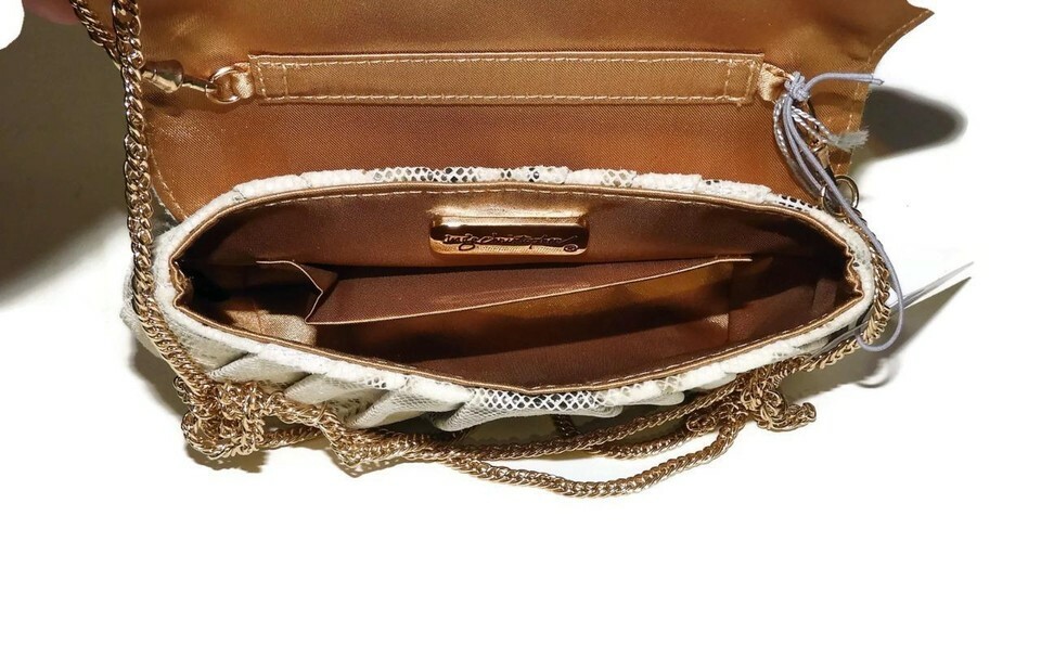 NWT INGE CHRISTOPHER Ivory Gold Suede Leather Snake Print Small Chain Handbag