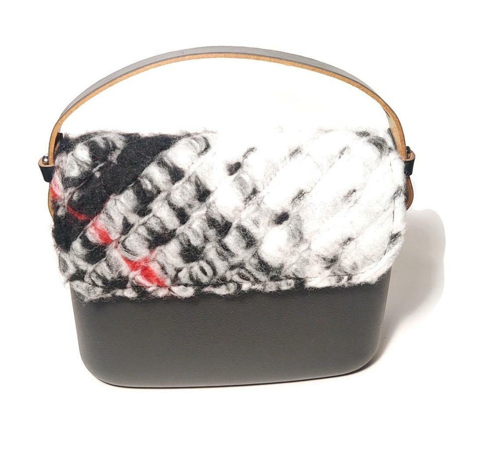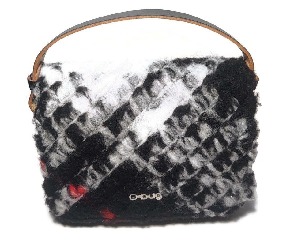 NWT OBAG Black and White Wool Leather Mini Tote Handbag