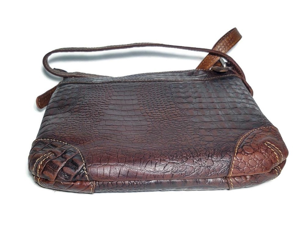 NWT Jack Georges Brown Hornback Croco Crossover Leather Crossbody Handbag