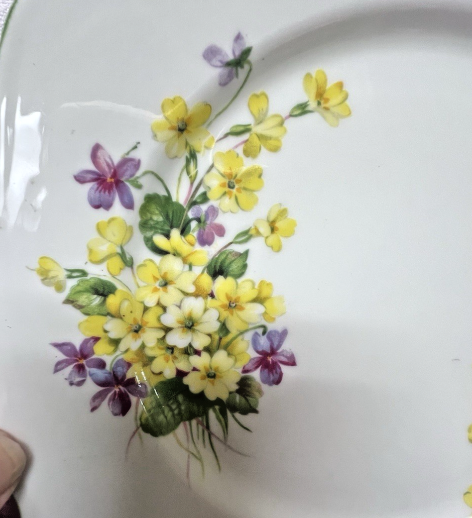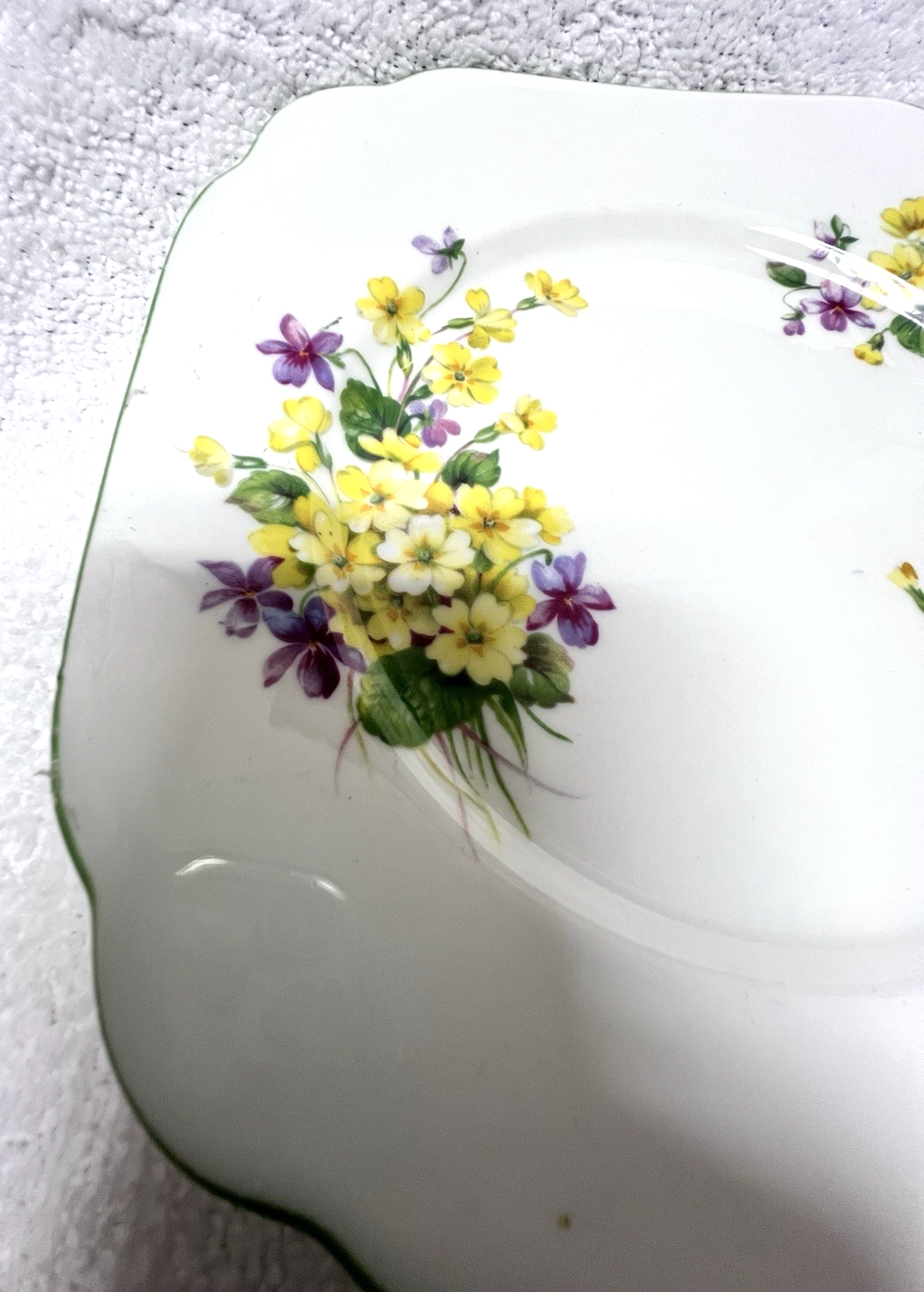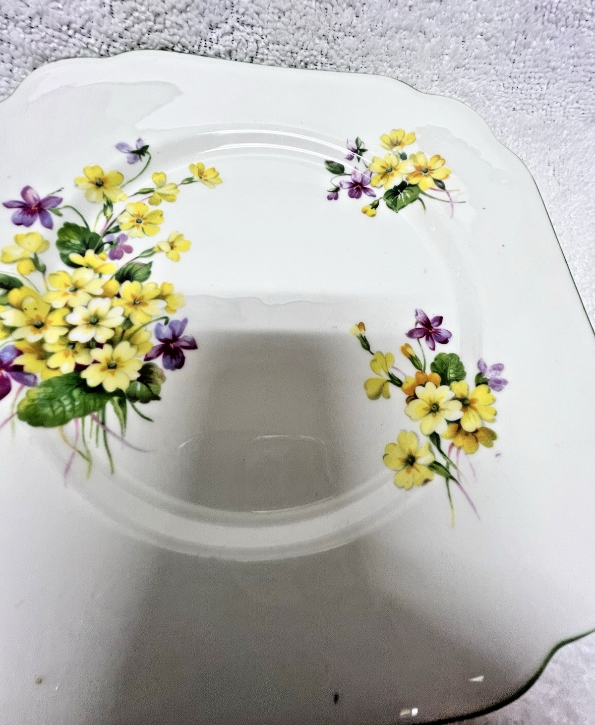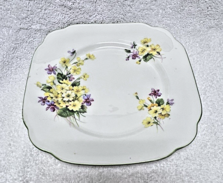 Primulette by Royal Albert Square Salad Plate 7 3/8 inch Green Edge Trim No chips or cracks the green rim has a bit of wear