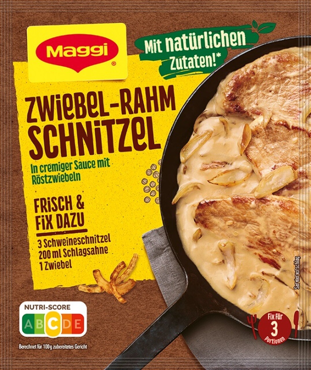 Juicy creamed schnitzel with onions in a quick sauce with Maggi Fix for onion and cream schnitzel are an absolute family favorite for young and old. Almost any side dish goes well with it: from potatoes or crispy French fries to pasta and light rice.