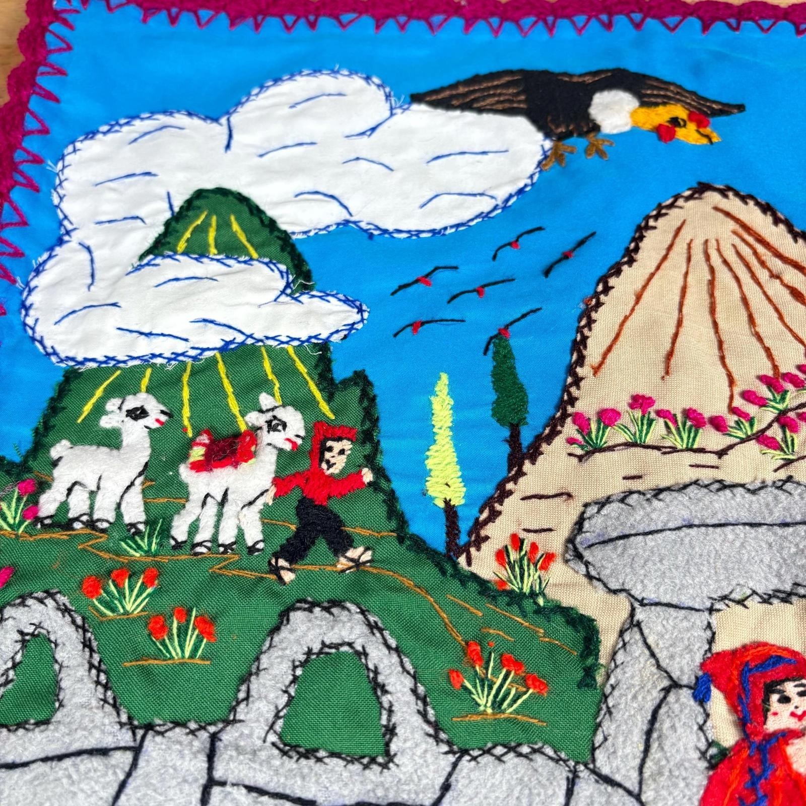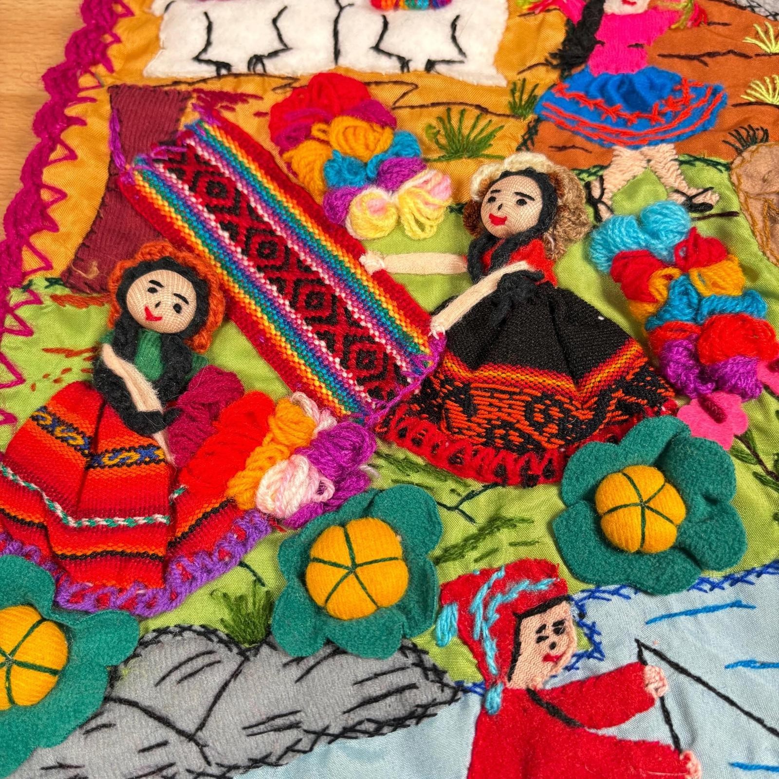 Andean Arpillera Wall Hanging 20x30 – Peruvian Folk Art Quilt, Handmade 3D