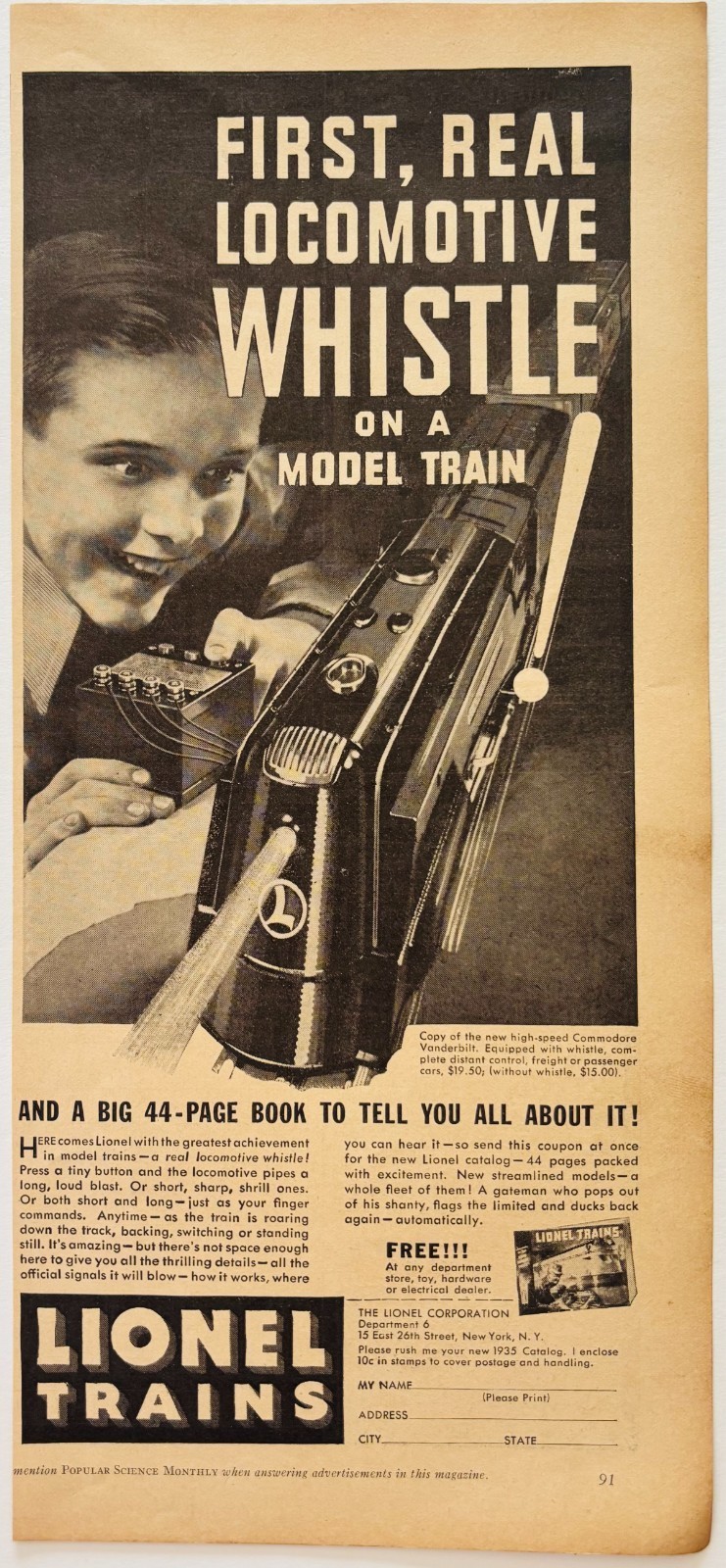 1936 Lionel Trains Locomotive Toys Advertisement Commodore Vanderbilt E90F1