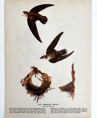 Chimney Swift Bird 1946 Color Art Print John James Audubon Nature Antique DWV2I