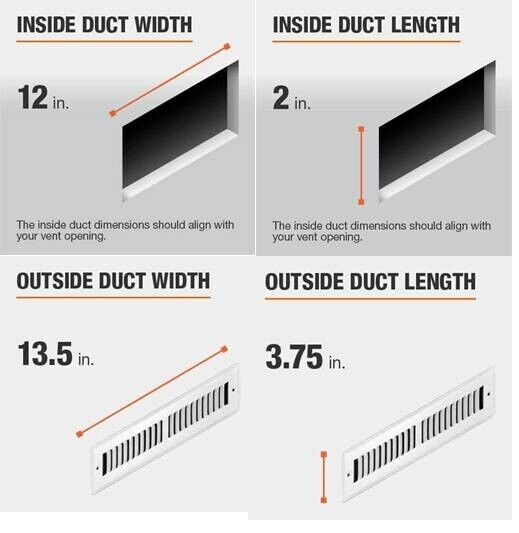 Duct opening measurements: 2 in. x 12 in. (Inside height x Inside width)