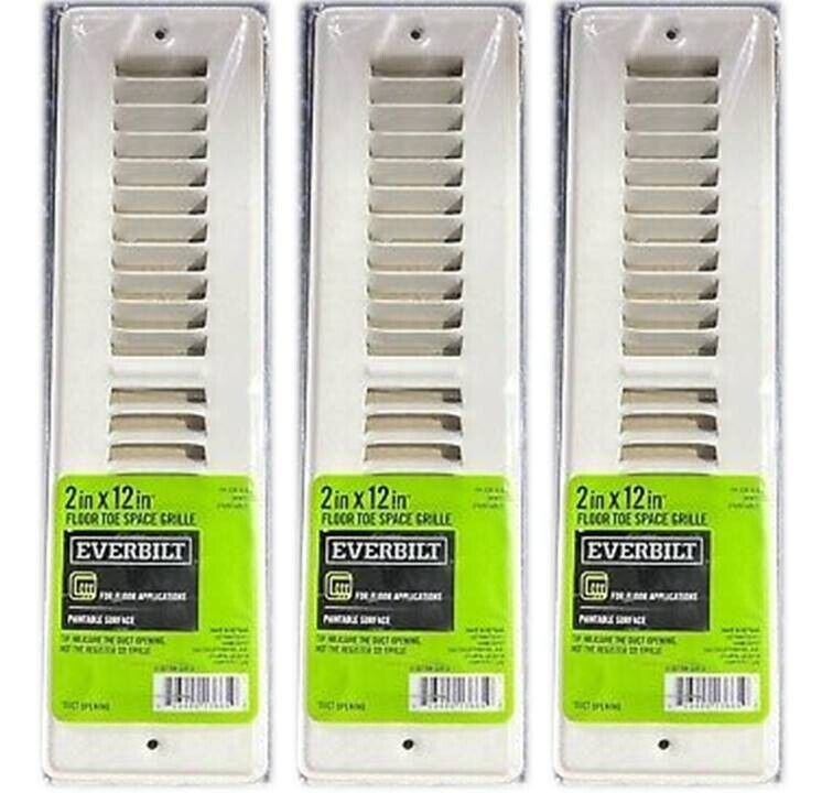 Floor Toe-Kick Space Grille 2'' I.W x 12'' I.L 2-Way Steel White EVERBILT 3-PK