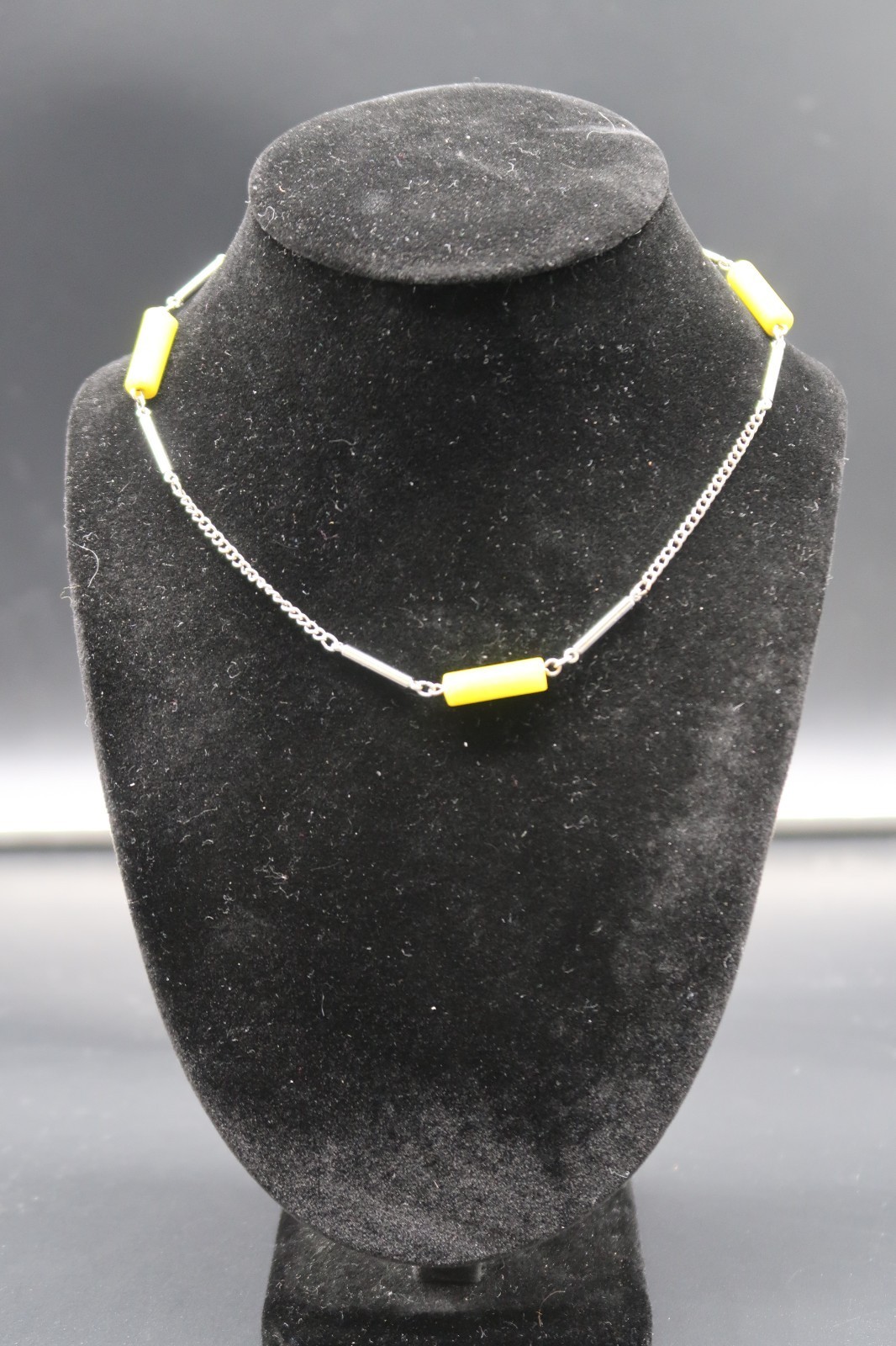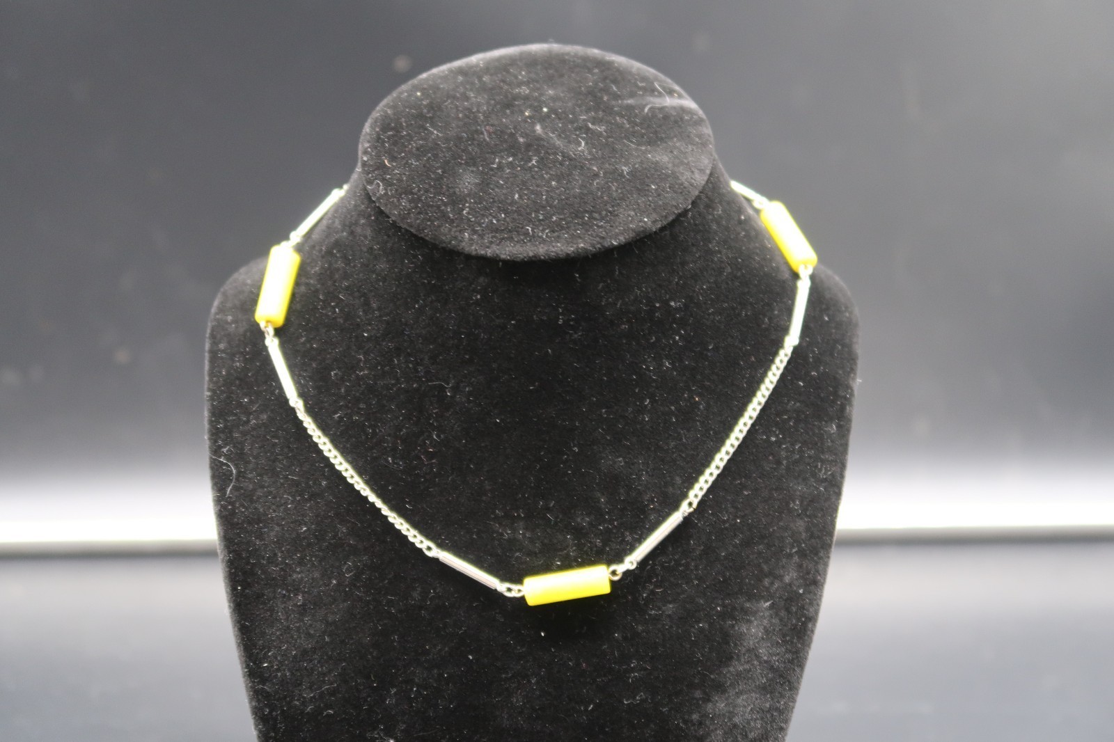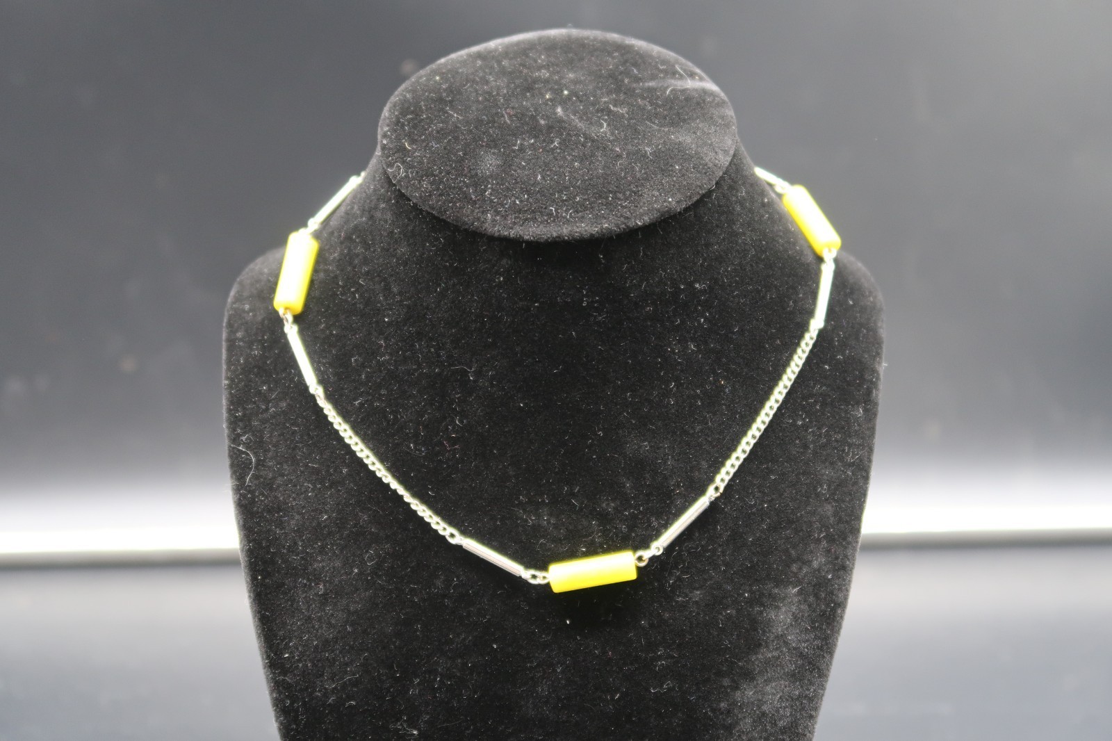 Vintage Mustard Yellow Station Necklace Silver Tone 15" Choker Length