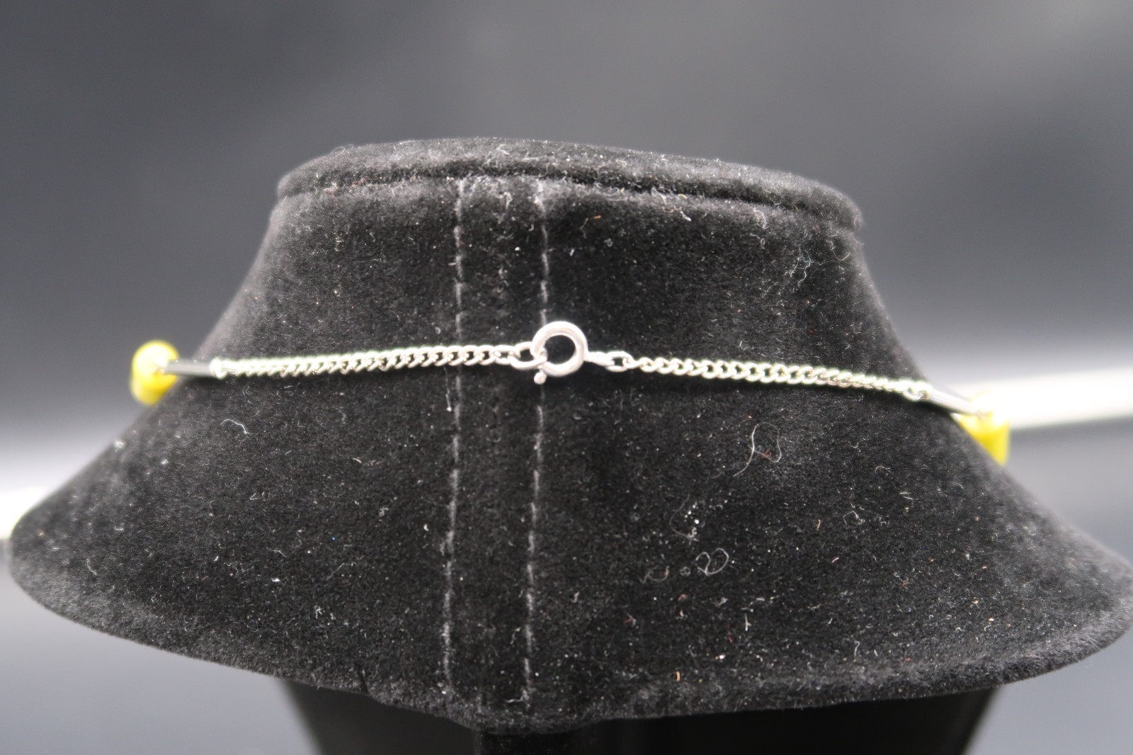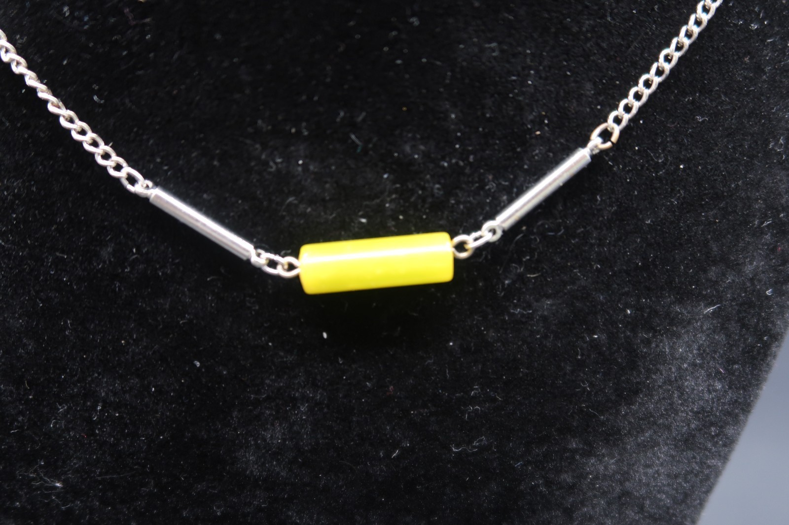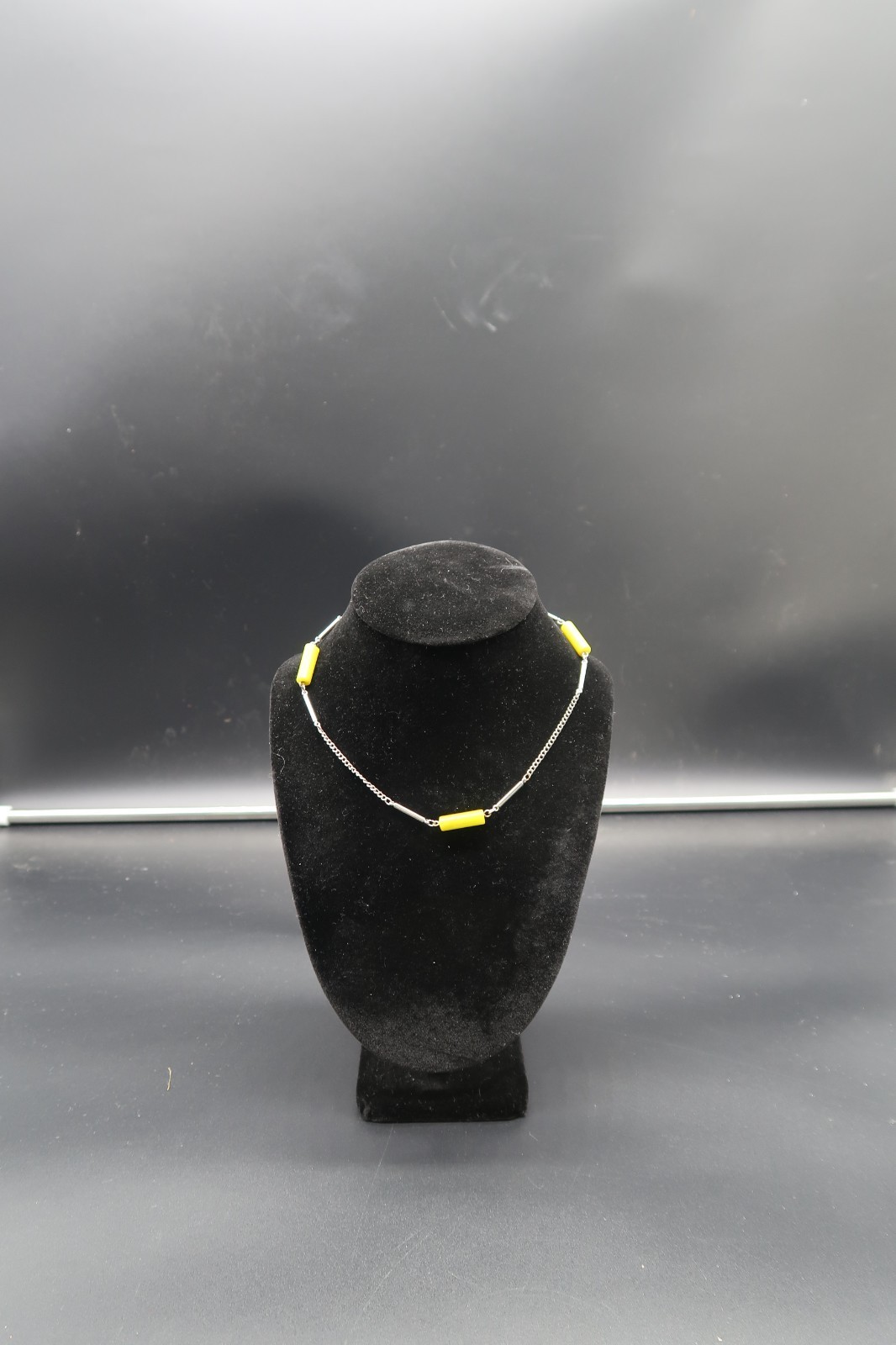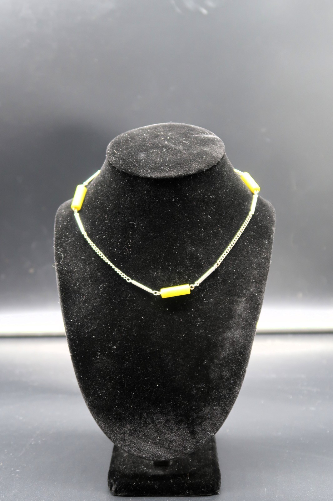 Vintage Mustard Yellow Station Necklace Silver Tone 15" Choker Length