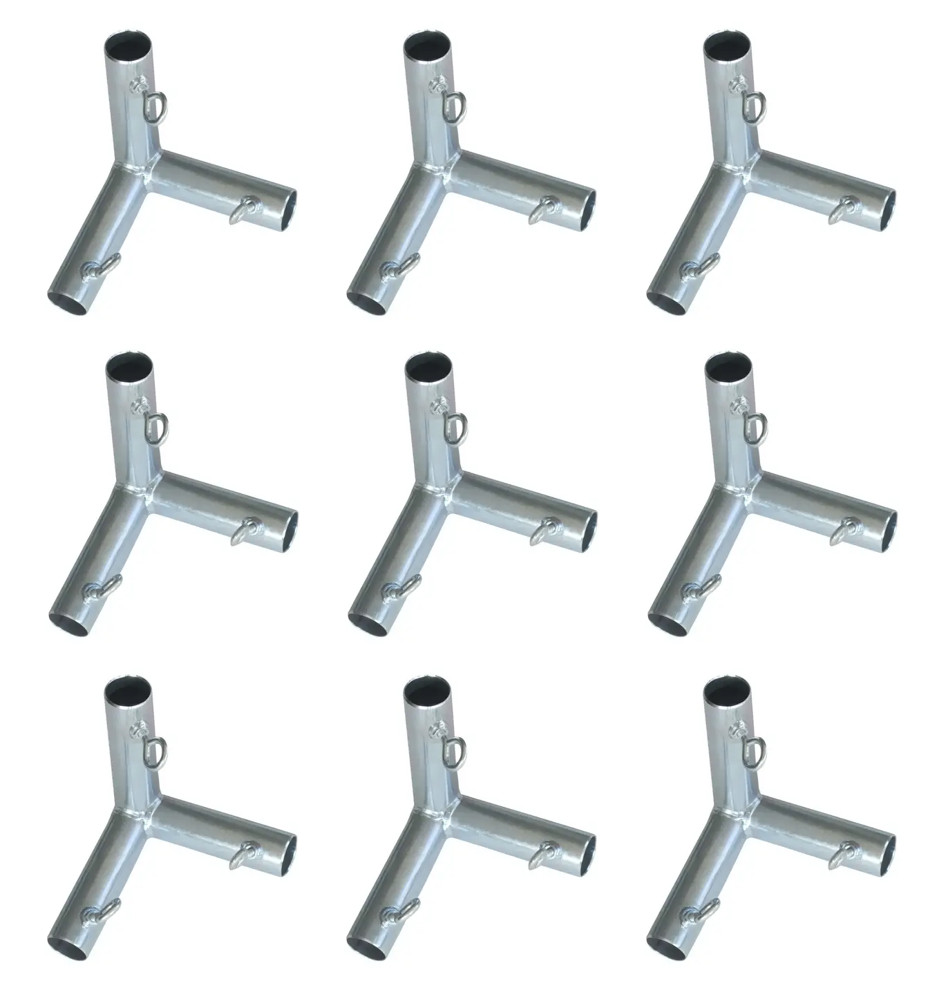 The AHC 802297 galvanized carbon steel connector is a heavy-duty, welded canopy fitting engineered for the structural assembly of outdoor canopies, pergolas, and covered structures. Designed with a 3/4-inch round end and a P3J (pipe-to-3/4" threaded) termination, it provides a robust, corrosion-resistant connection point for joining horizontal and vertical tubular framing members ? commonly used in commercial, residential, and agricultural shade structures. Constructed from thick-gauge carbon steel with a hot-dip galvanized finish, it resists rust, weathering, and environmental degradation ? ensuring long-term performance in exposed outdoor environments. Integrated welded nuts and four eye bolts per unit allow for secure, bolted assembly without welding or specialized tools, enabling quick, reliable construction of canopy frames.