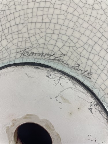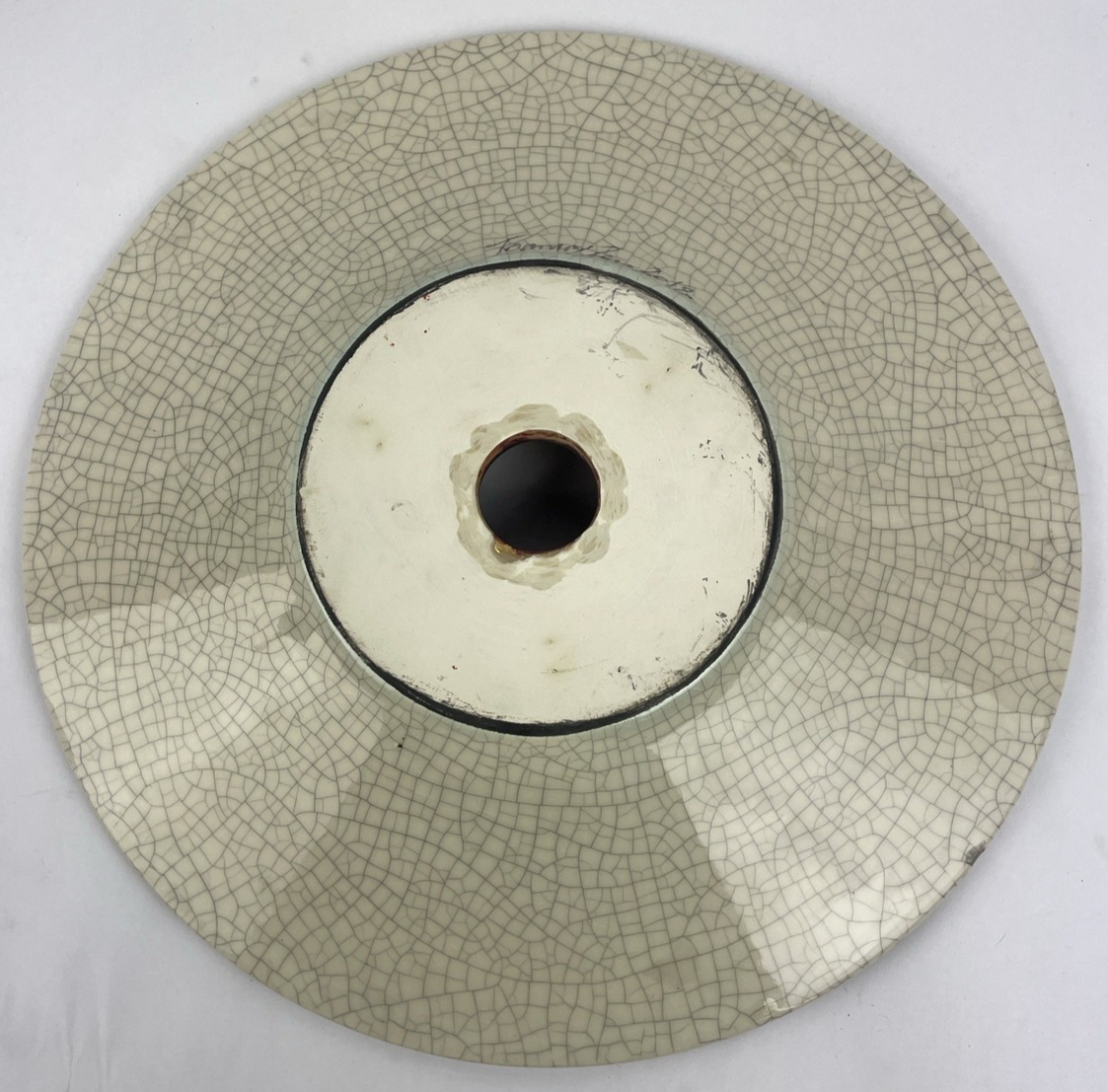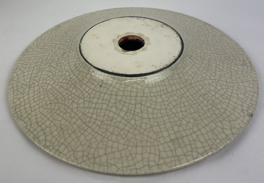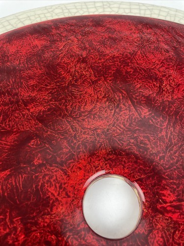 Tommy Zen Designs Round Tempered Glass Vessel Sink Metallic Red w Cracked Creme Border Modern Decor Design Outside Diameter 14.5"