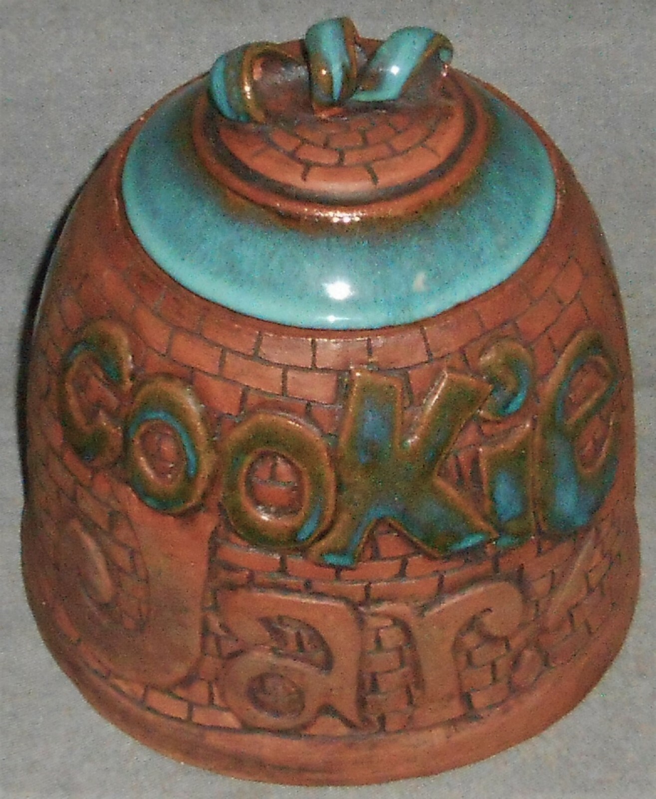 1982 Red Clay Stoneware "MOMS COOKIE JAR" signed -FIALA Great Design and Quality
