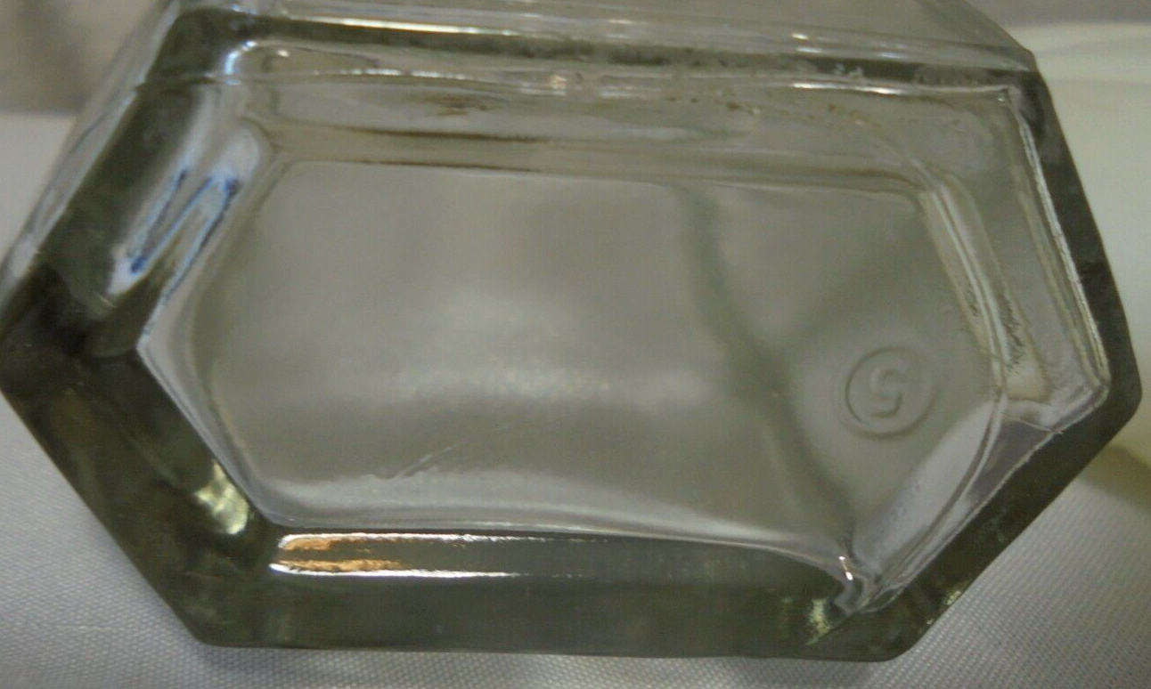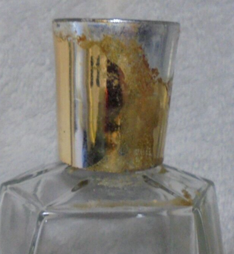 Emeraude bottle has tarnished cap. 7"H x 3"W.
