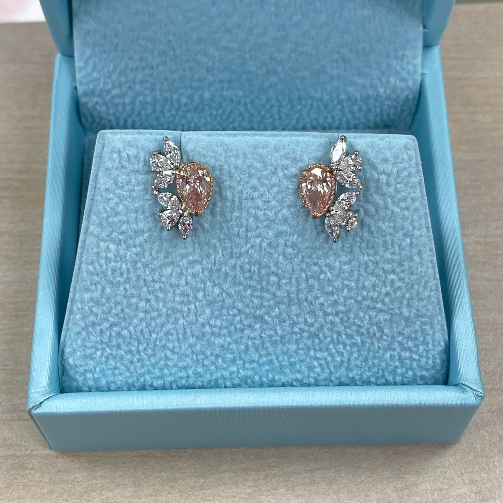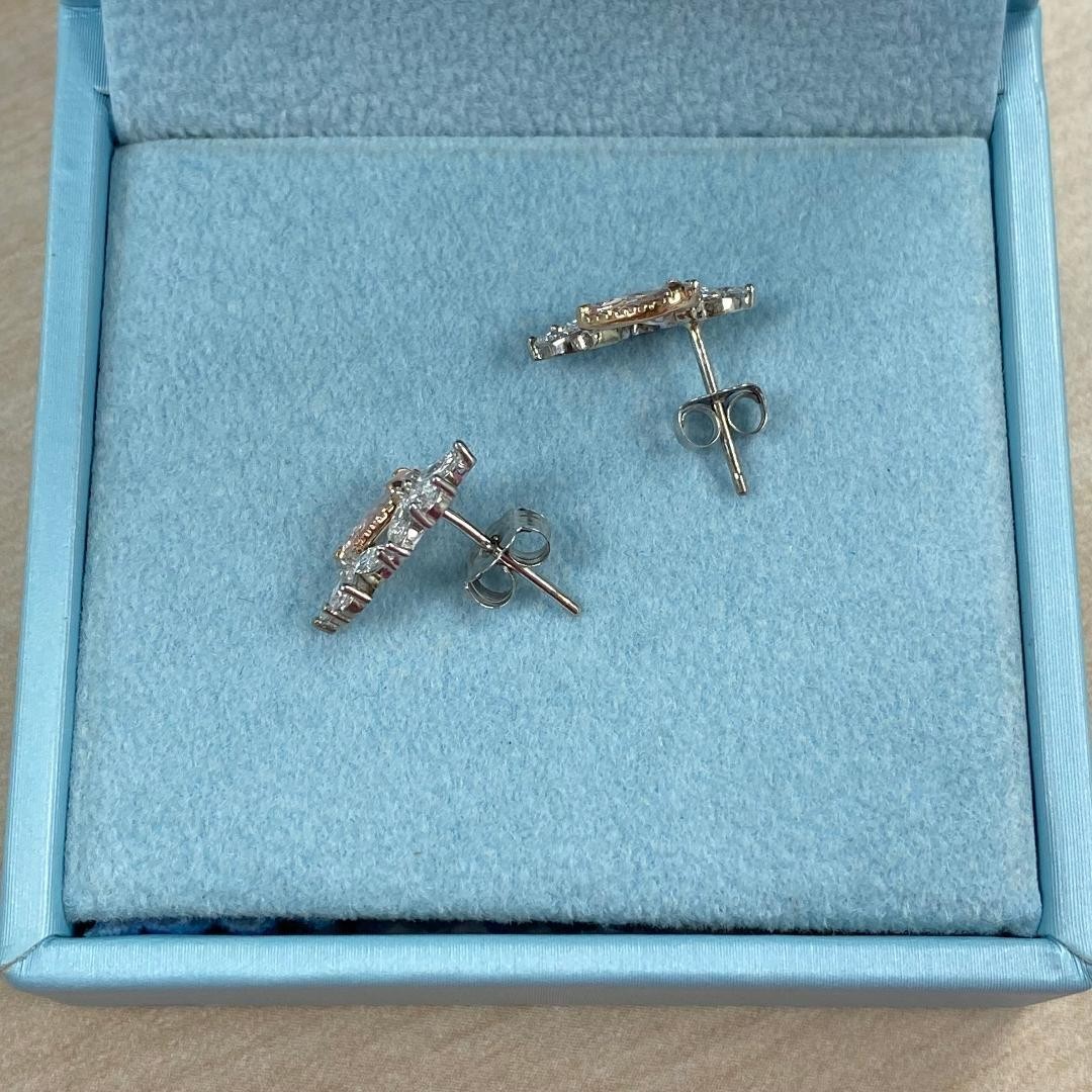 1.30 TCW Pear Lab Grown Fancy Intense Pink Diamond Stud Earrings 14k White Gold