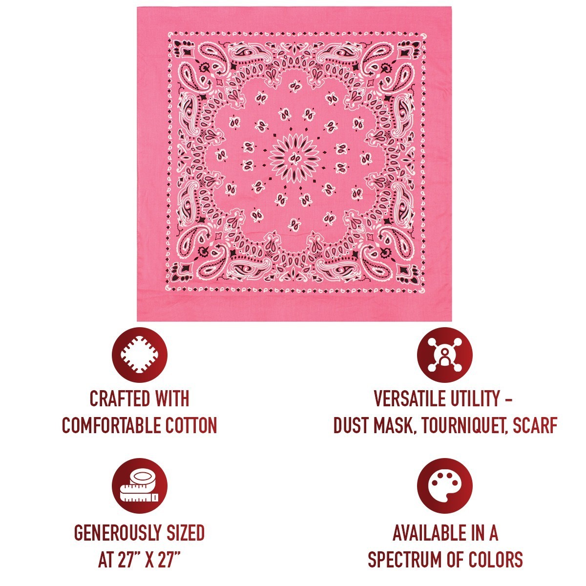 Rothco Jumbo Trainmen Paisley Bandana Cotton Pink Headwrap Face Cover 27X27