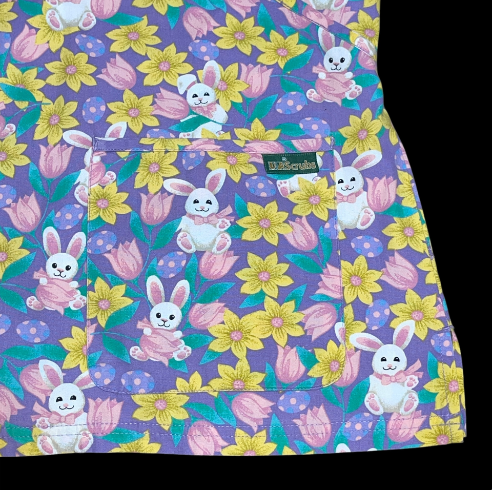 UA Purple Easter Egg Bunny Rabbit Floral Spring Scrub Top Shirt Medium Nurse