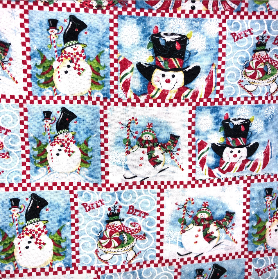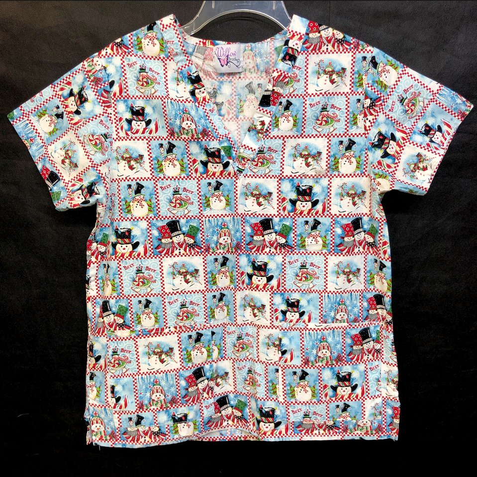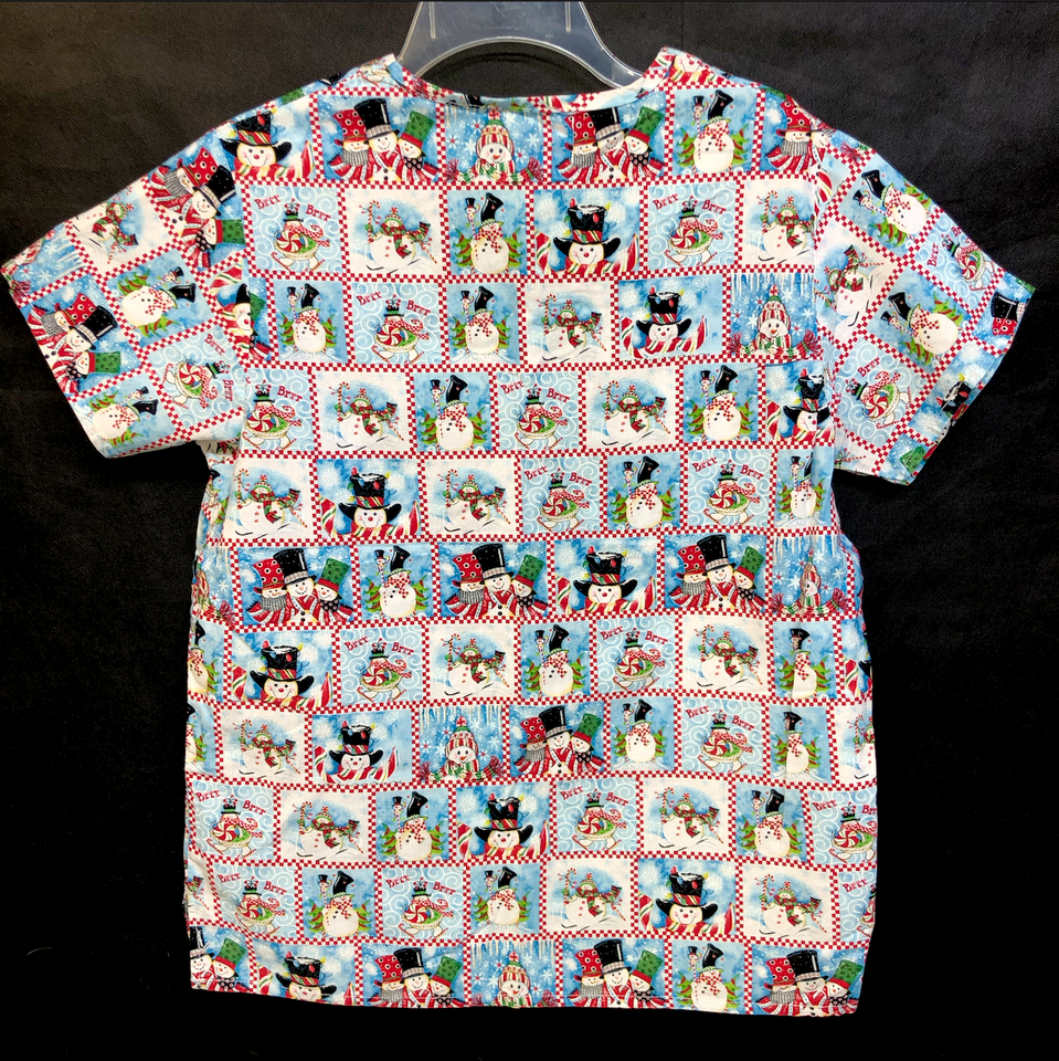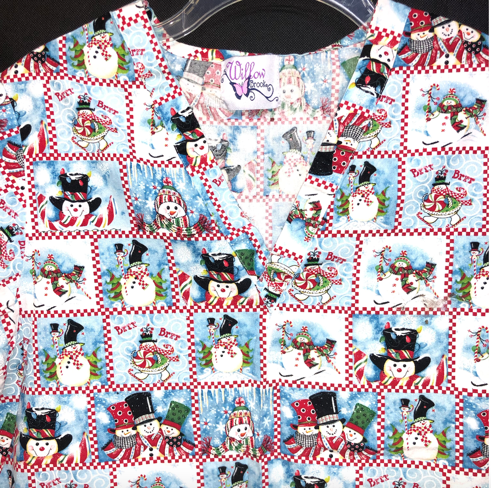 Willow Brook White Winter Holiday Season Peppermint Snowman Scrub Shirt Small