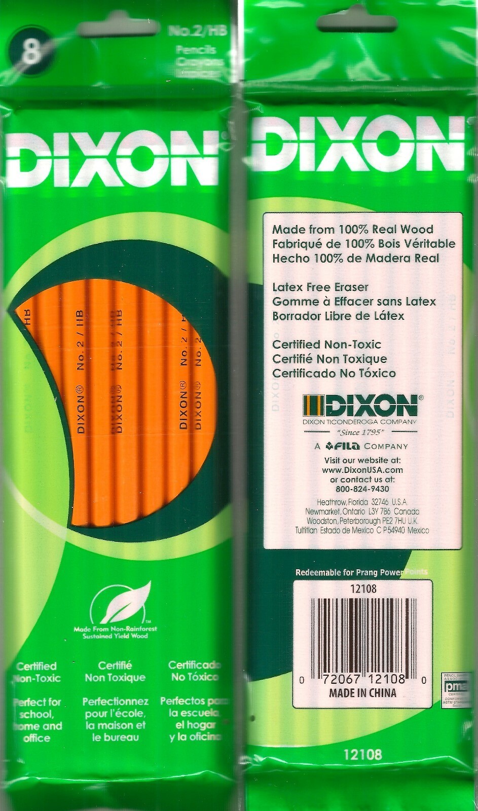 FOR SALE IS ONE (1) NEW EIGHT PACK OF DIXON TICONDEROGA BRAND NUMBER 2/HB (hard black) REAL WOOD PENCILS BY DIXON BRAND MPN 12108 UPC# 072067121080. EIGHT (8) PENCILS TOTAL IN THIS LISTING, THESE HIGH QUALITY CLASSIC WOODCASE PENCILS ARE MADE OF 100% REAL WOOD WITH A QUALITY GRAPHITE CORE. NUMBER TWO WOODEN PENCILS ARE THE BEST CHOICE FOR MOST ANY TASK, PERFECT FOR USE IN SCHOOL, STANDARDIZED TEST TAKING, DRAWING, SKETCHING, HOME AND BUSINESS. LATEX FREE ERASER AND PMA CERTIFIED NON-TOXIC. YOU WILL RECEIVE THIS NEW PACKAGE OF EIGHT (8) DIXON TICONDEROGA BRAND NUMBER 2 WOOD PENCILS SHIPPED BY USPS FIRST CLASS MAIL.....
