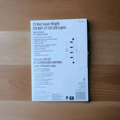 Home Accents 25 Red Christmas LED C9 Lights 2X Bright Steady Lit