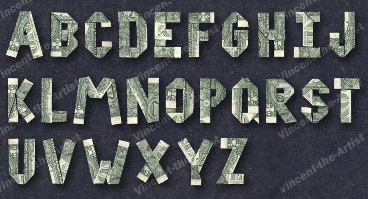 MONEY ORIGAMI LETTERS Made with REAL Dollar Bill Cash Currency Alphabet BankNote