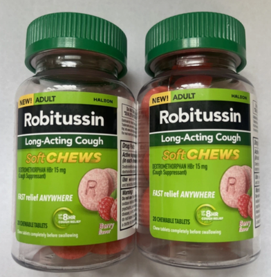 2 Pack Expiration Date of 02/2026 ? 20 Chewable Tablets of Robitussin Soft Chews, Long-Acting Cough Relief in each bottle ? Powerful cough medicine that comes in a soft and airy chewable tablet ? Long-acting soft chews provide up to 8 hours of cough relief ? No water needed, no fuss?just simple, effective relief that you'll know is working ? Take two soft chew tablets every 6-8 hours as needed ? Formulated for adults ? HSA and FSA eligible product