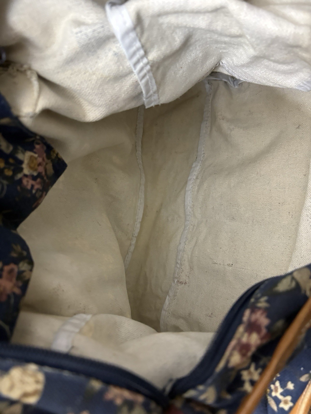 Carpetbags of America Blue Floral Rose Canvas Tapestry Bag Purse Leather Braid