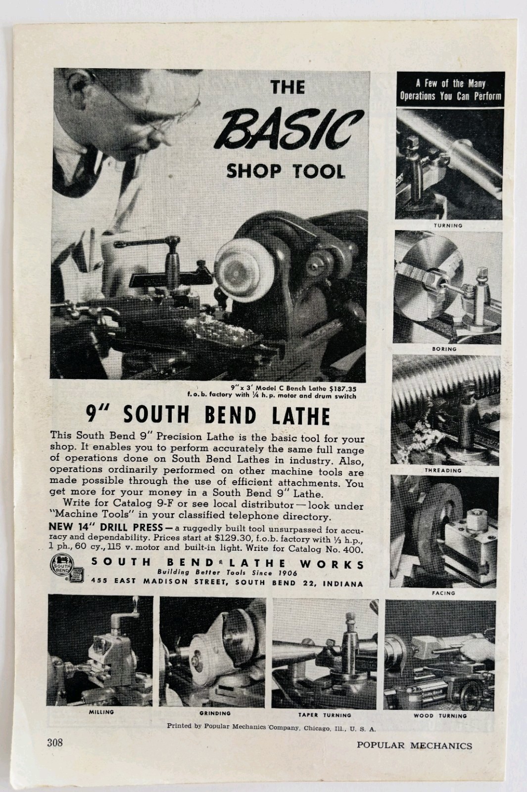 1949 South Bend Lathe Work Shop Tool Advertisement Vintage Woodworking E8L