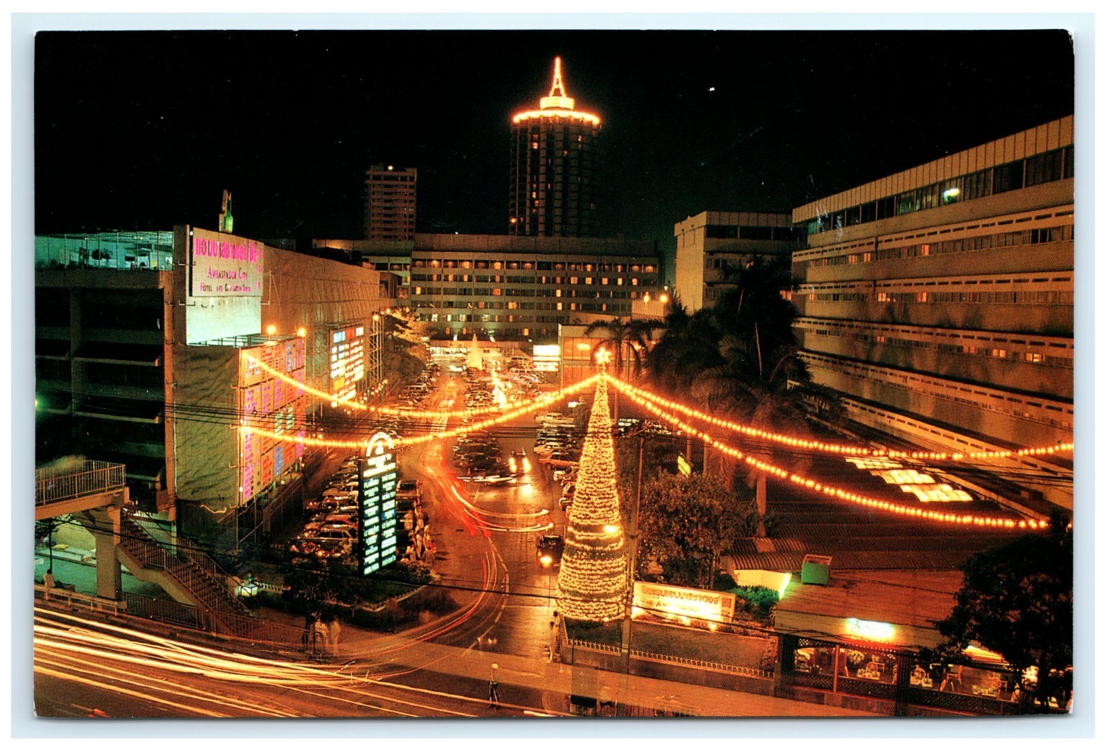 This vintage postcard showcases the Ambassador Hotel Convention Centre, a prominent landmark located in the heart of Bangkok's vibrant Sukhumvit district. Established in the 1960s, the hotel has been a staple for both business and leisure travelers, offering a blend of traditional Thai hospitality and modern amenities. Its strategic location provides easy access to shopping centers, dining establishments, and entertainment venues, making it a convenient choice for visitors exploring the city. The accompanying convention centre has hosted numerous international conferences and events, further cementing the hotel's reputation as a key player in Bangkok's hospitality scene. This postcard captures the essence of the Ambassador Hotel Convention Centre, reflecting its enduring presence in one of Southeast Asia's most dynamic cities.