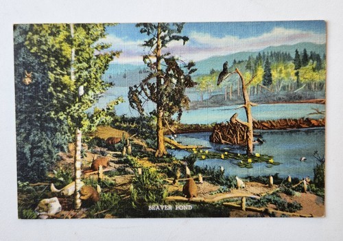 Beaver Pond Landscape View Diorama State Museum Denver CO Linen Postcard