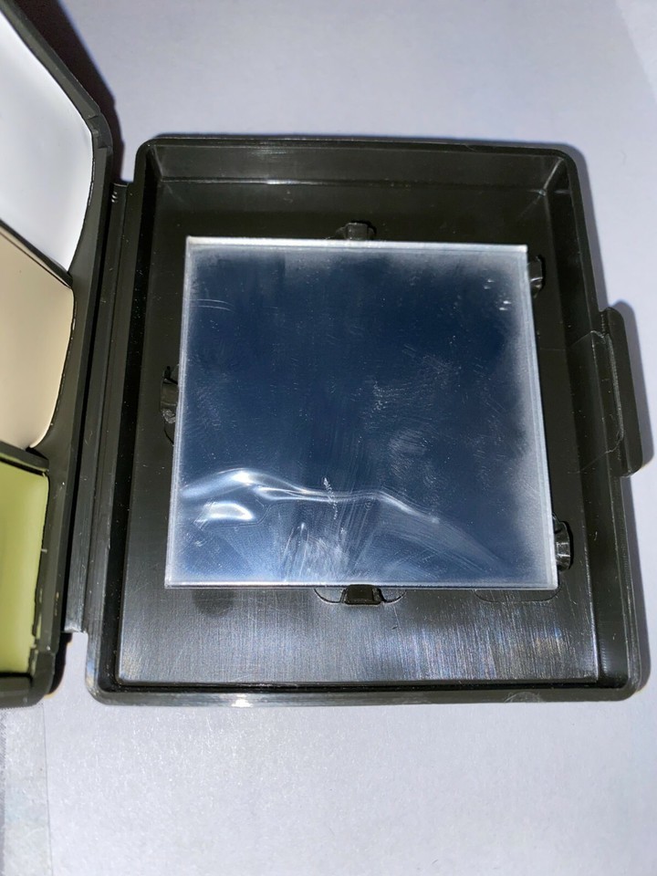SIZE: MIRROR IS 2"X2" THE OVER ALL COMPACT IS 3"X2 1/2"X1/2"
