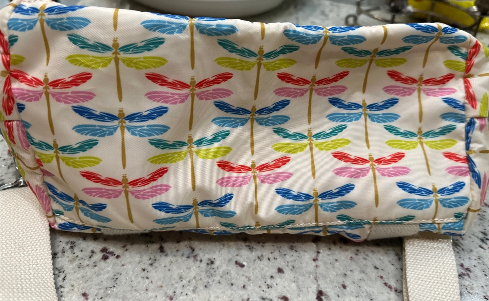 Bag in multicolor dragonfly design is a stylish and versatile tote suitable for casual and workwear occasions.