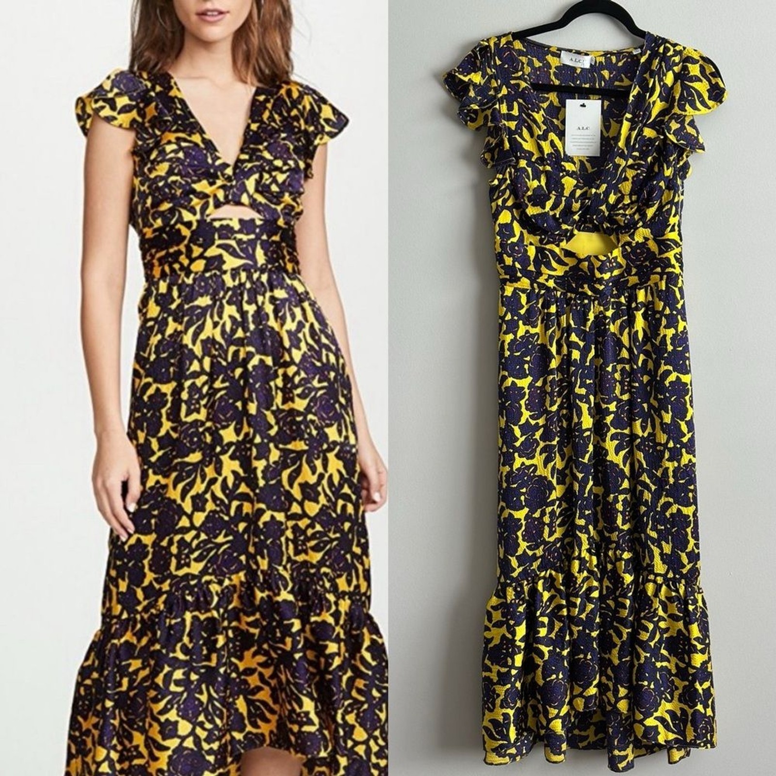 ALC Valencia Maxi Midi Hight Low Dress in Yellow and Purple size 6 Designer