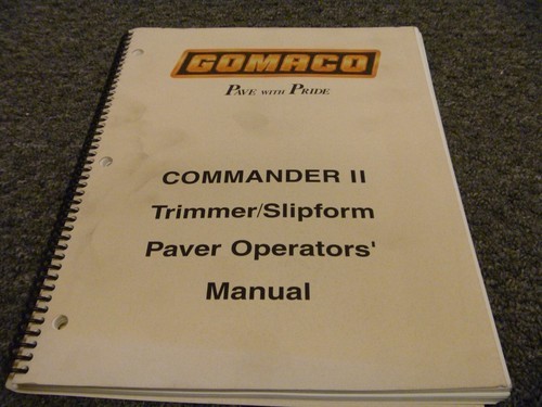 Operators manual has stains on the front back cover. Over all the contents within are in good legible condition. COVERS PARTS INFORMATION, great manual to have when you own a Gomaco Automated Slipform Trimmer/Paver. We will leave POSITIVE Feedback after we receive your payment. Please do not forget to give us POSITIVE Feedback and FIVE Stars on all of the Detailed Seller Ratings! If you are not satisfied with your shopping Experience, please contact us to get a solution before you decide to leave a NEUTRAL or a NEGATIVE Feedback, We will do our best to solve any problems for you as soon as possible. We will provide you with the BEST POSSIBLE service because the POSITIVE Feedback and FIVE Stars are what we are striving for. Please email me through "My Messages" or "Ask Seller Questions"