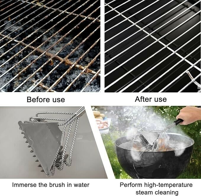 EFFICIENT CLEANING BRUSH : Effectively Removes Barbecue Residues and Stains Attached to the Grill. Soak the Grill Brush in Water for Steam Cleaning, Which can Quickly Make the Grill Smooth and Clean, or use a Scraper to Remove Residual Oil and Burnt Food From the Grill.