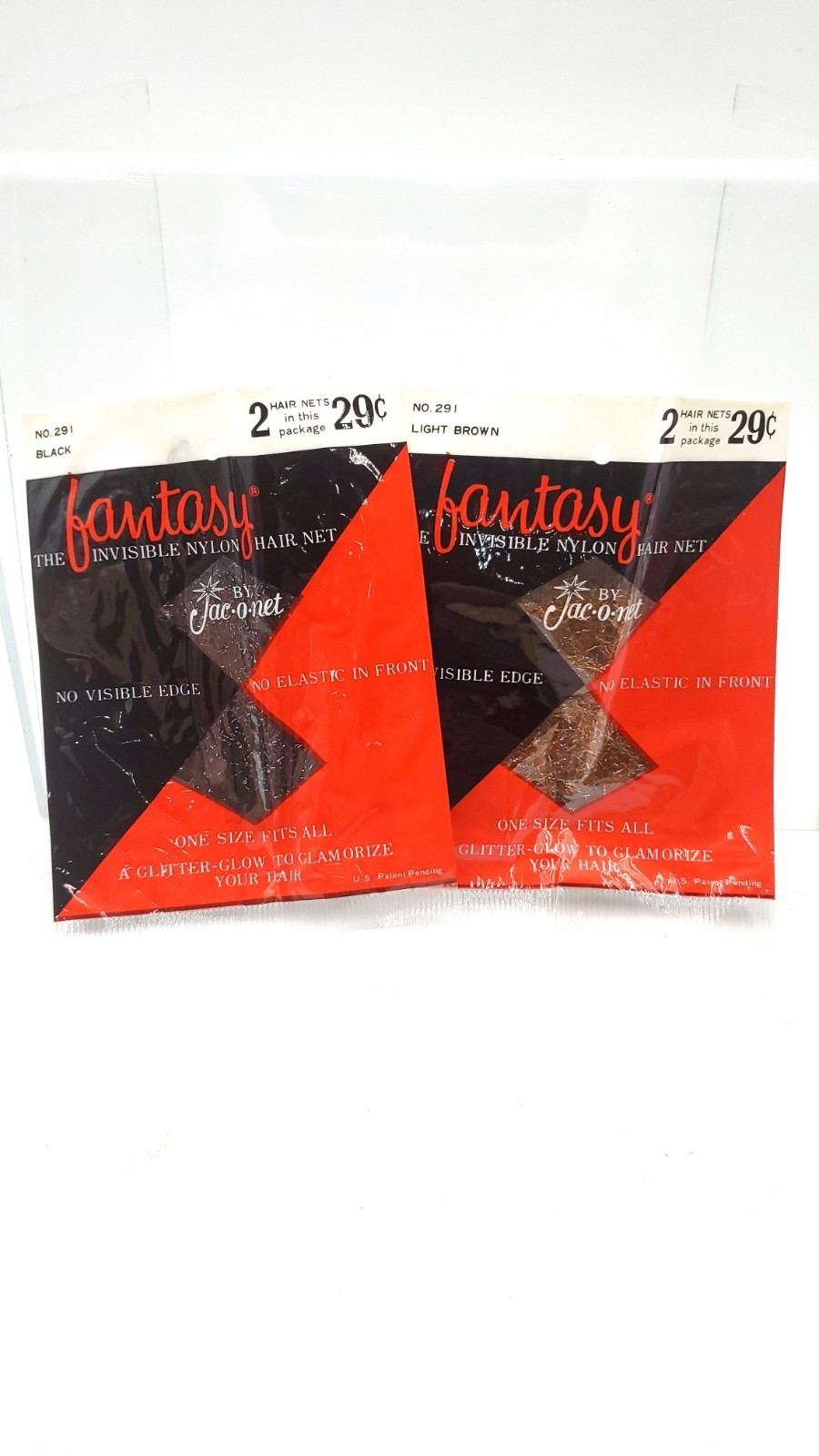 Lot of 2 NIP Vintage Fantasy The Invisible Hair Net Black Brown Glitter Glow