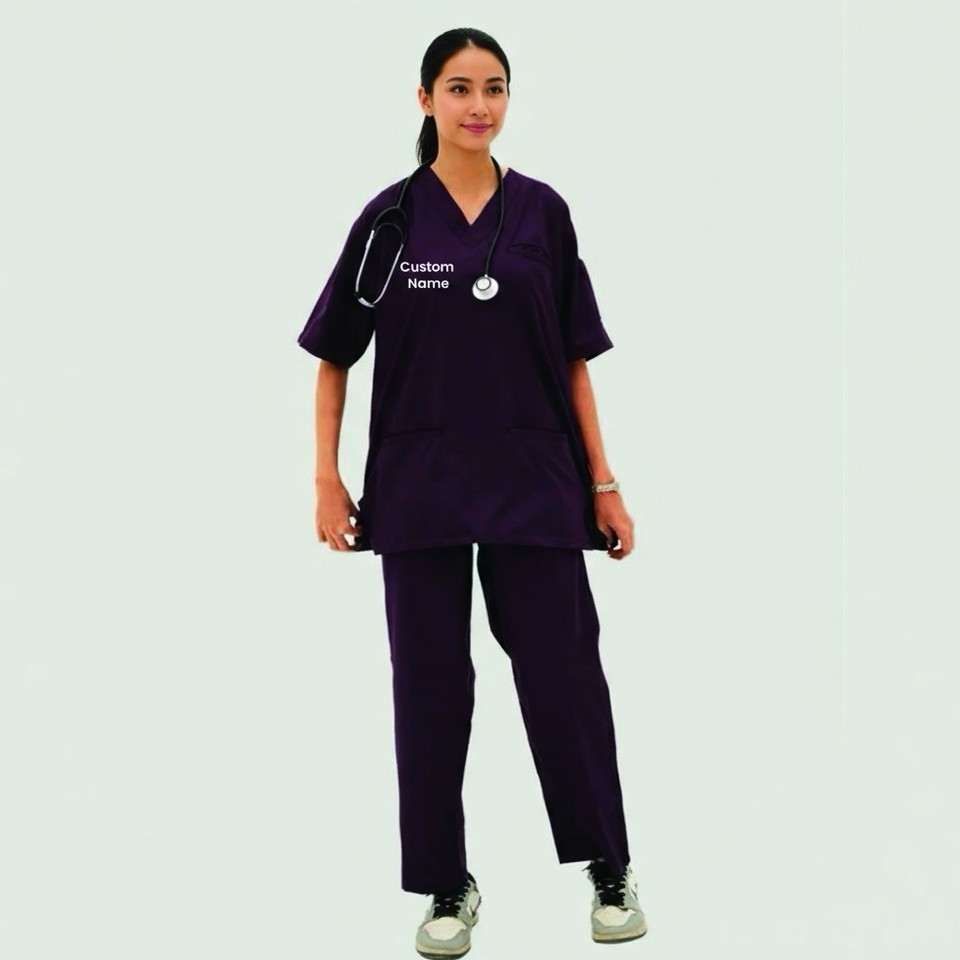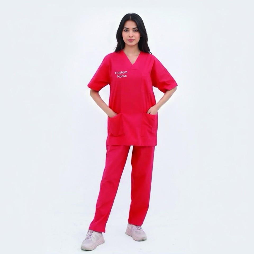 Custom Nurse Scrub & Trouser Set, Embroidered 3 Colors Personilized S-XL