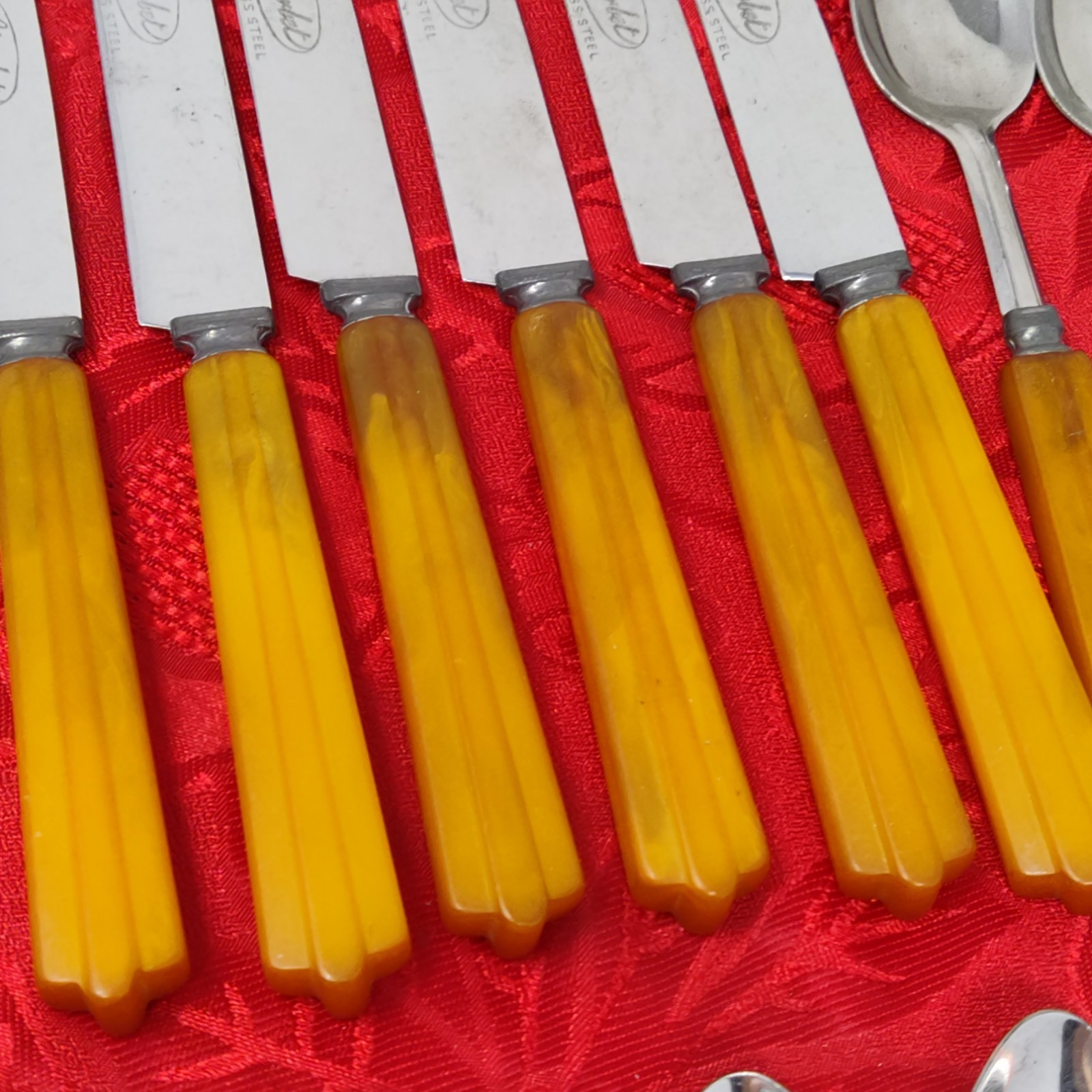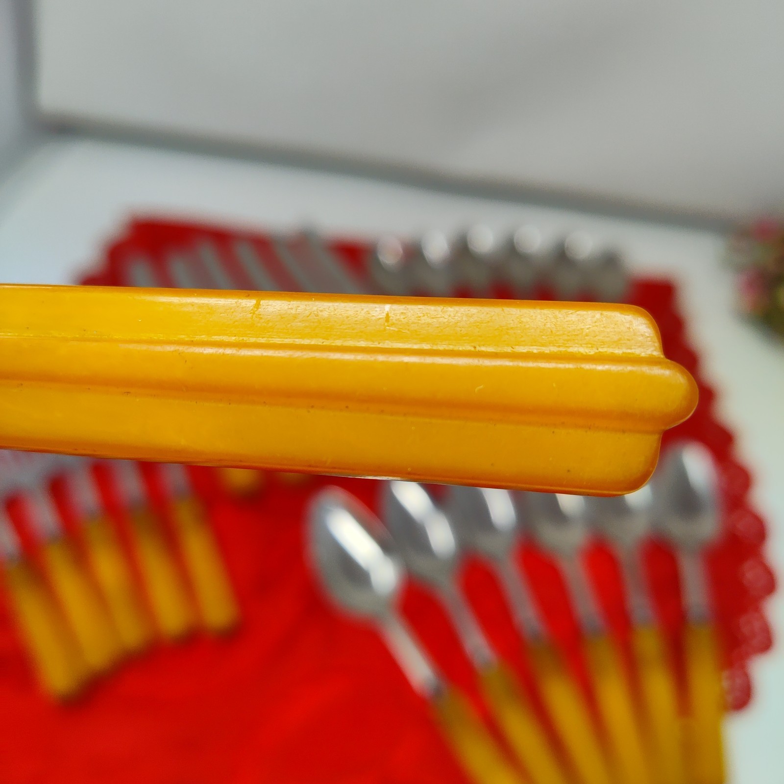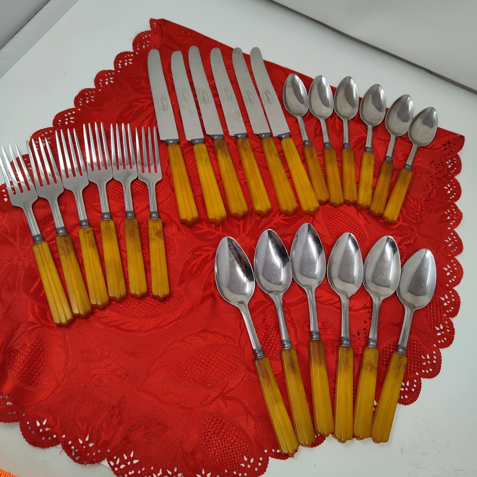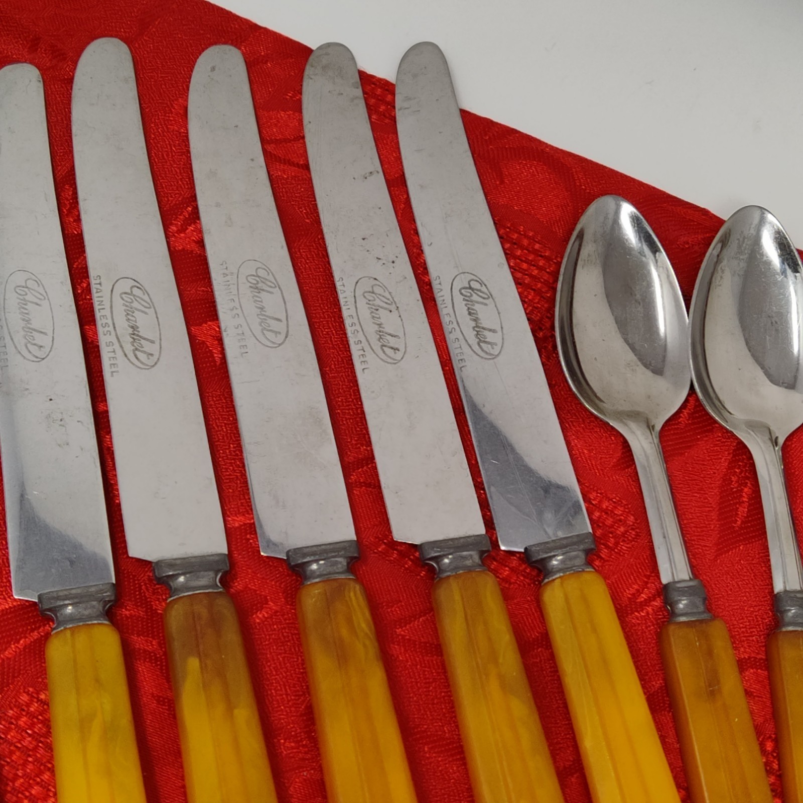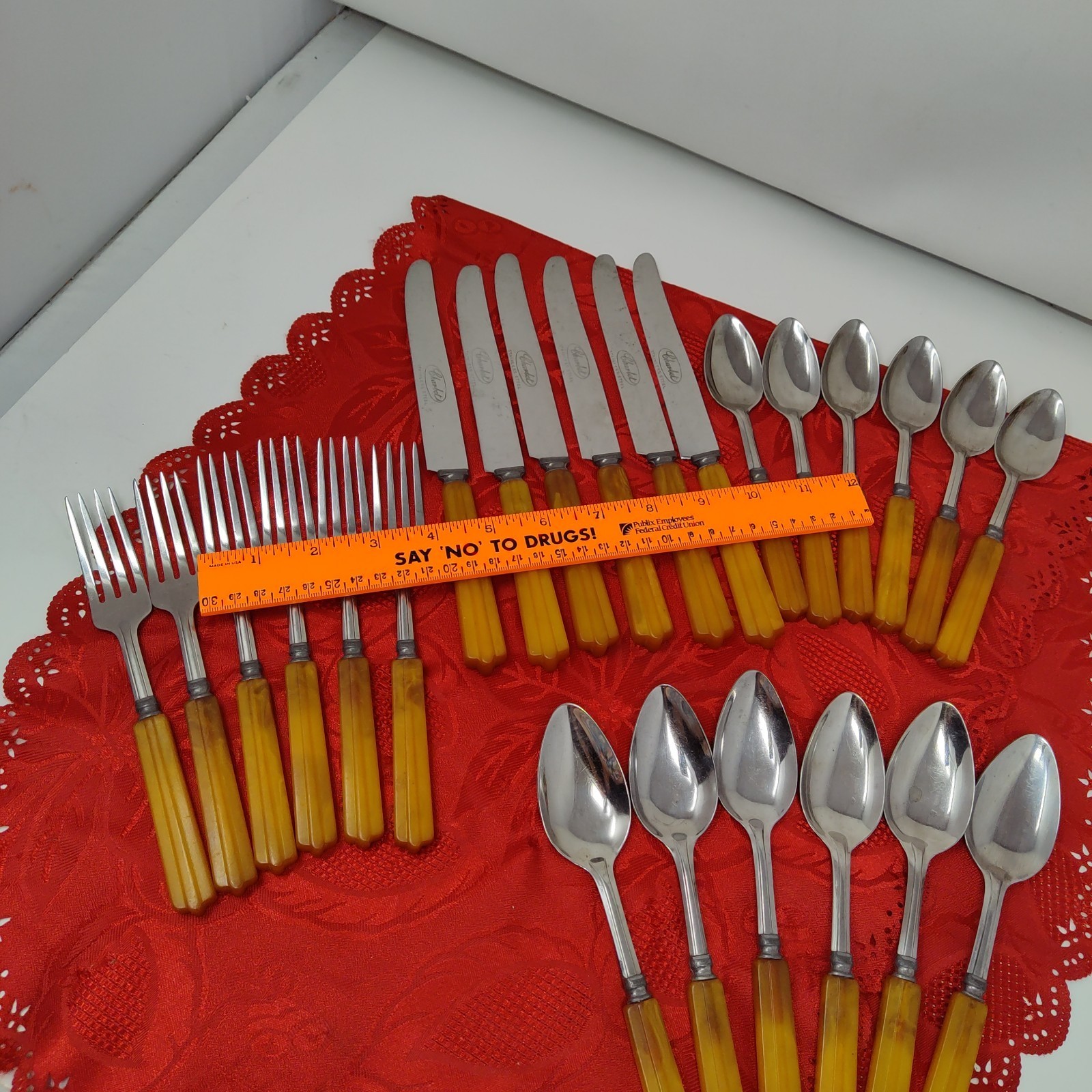 24X Set Charbet Stainless Flatware Butterscotch Yellow Lucite Handles