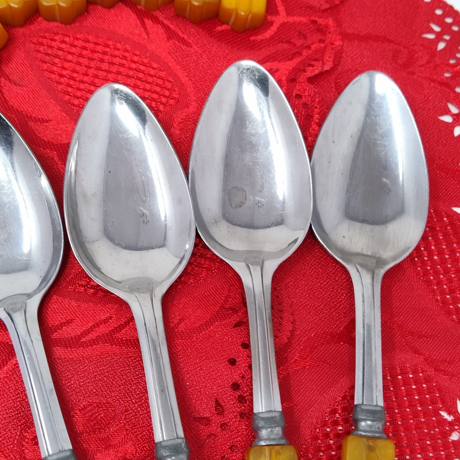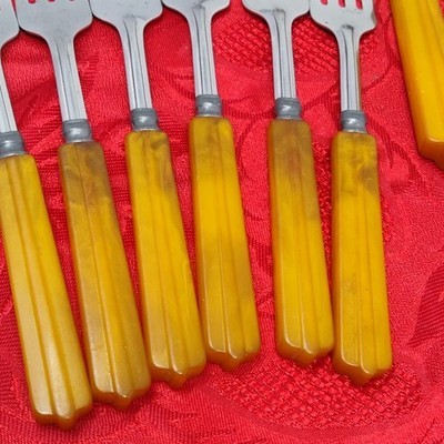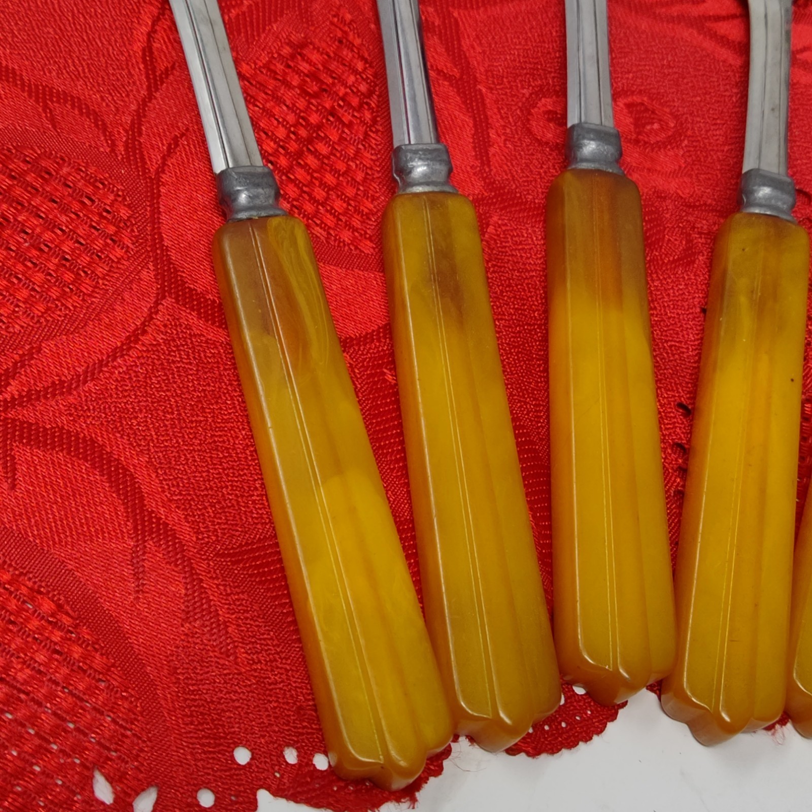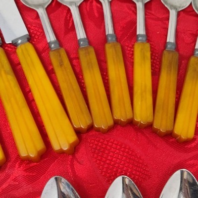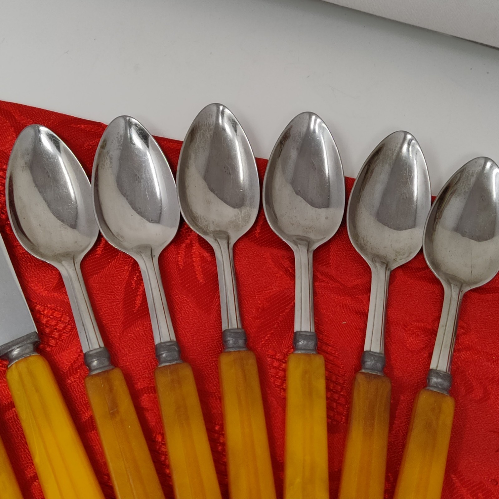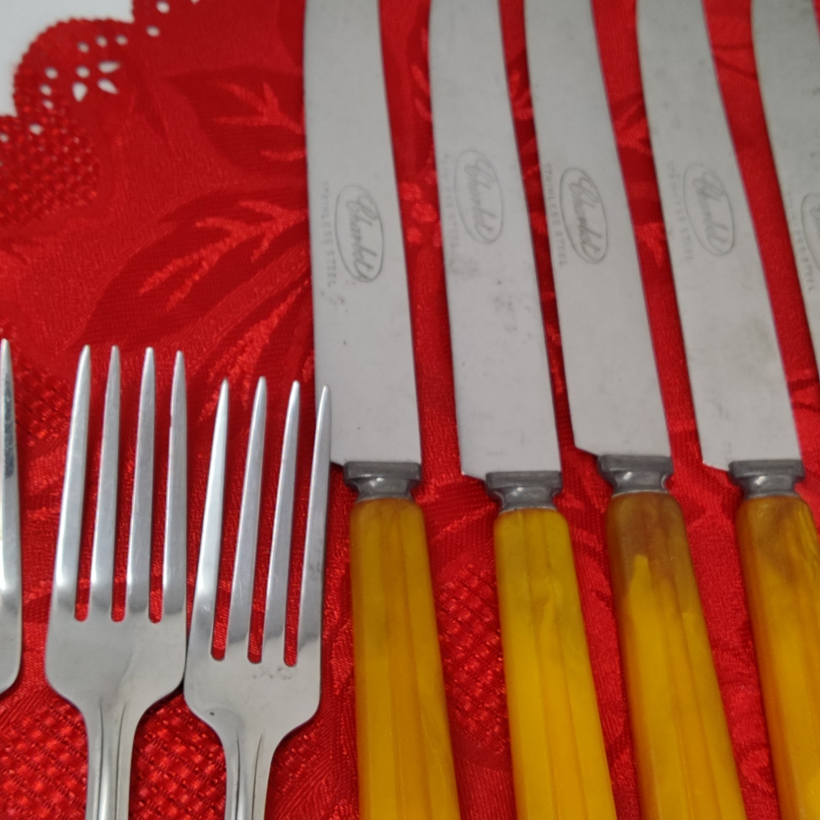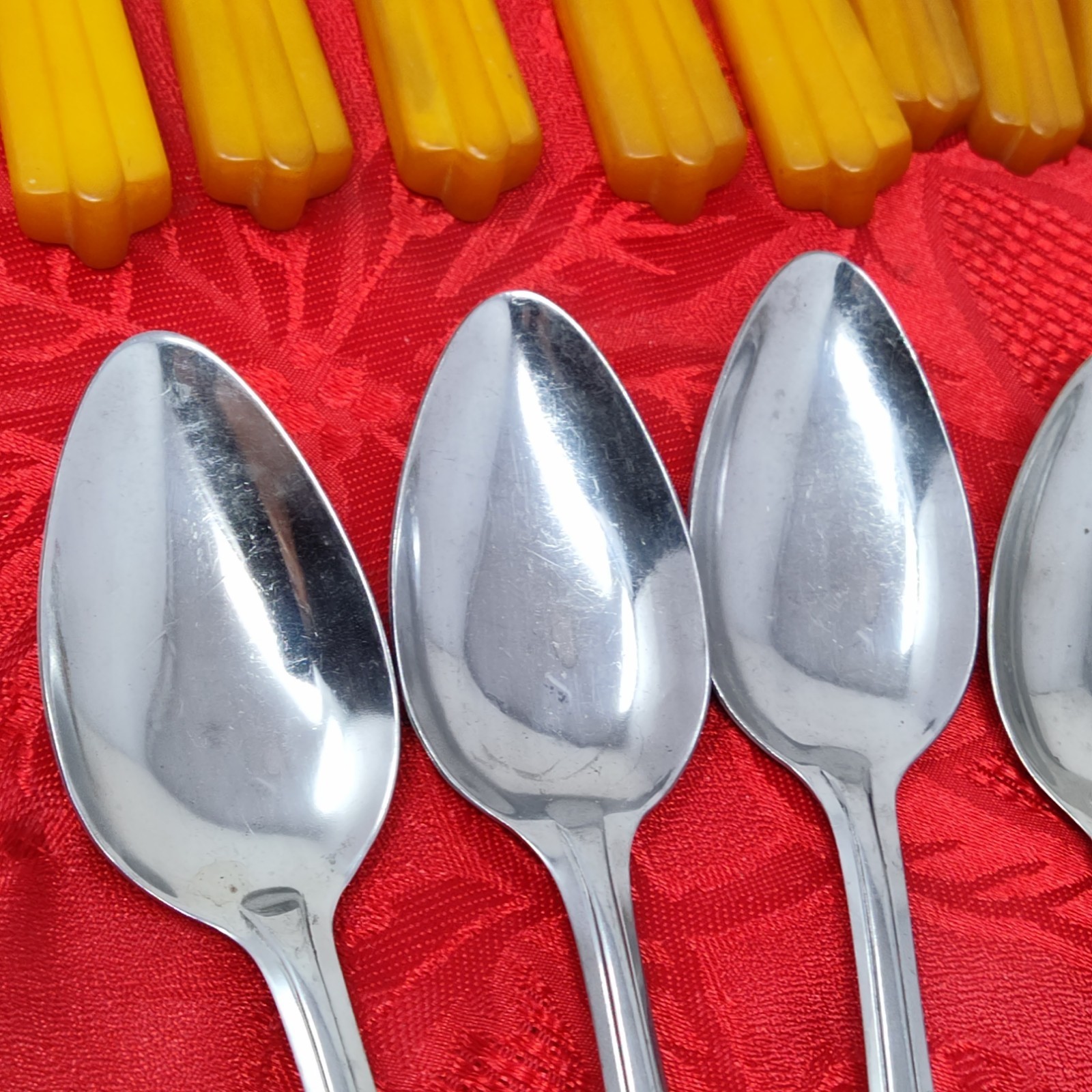 24X Set Charbet Stainless Flatware Butterscotch Yellow Lucite Handles