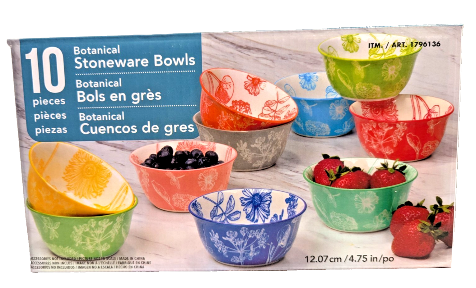 Botanical Certified 4.75" All Purpose Bowls 10-pc Kitchen Multicolor Gift NEW