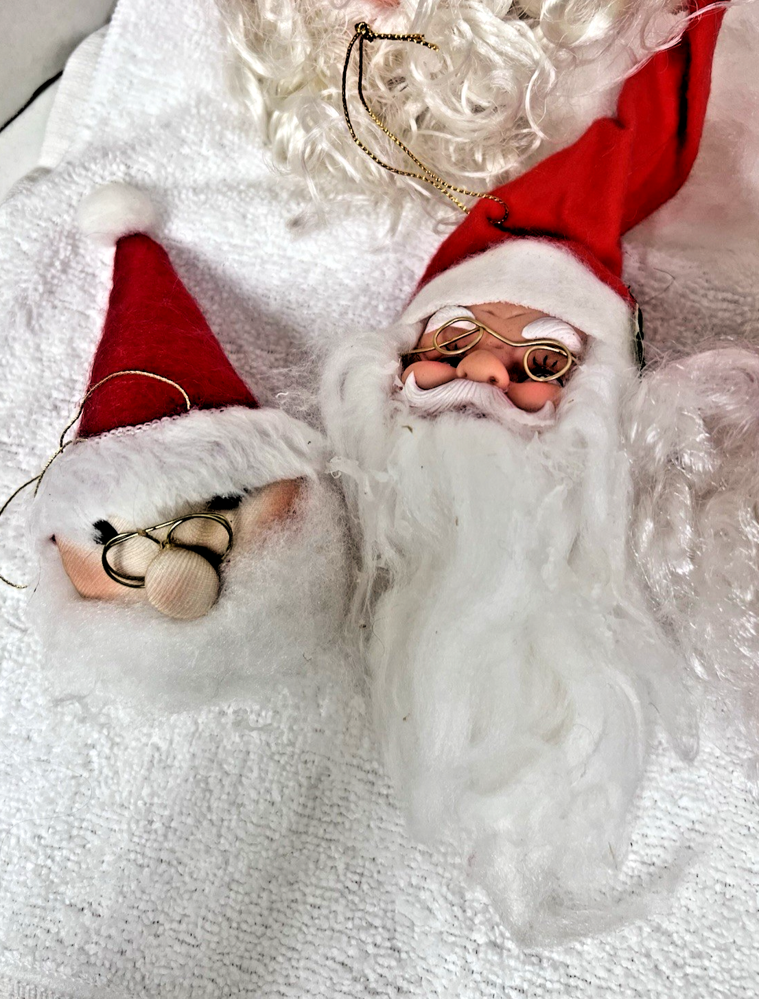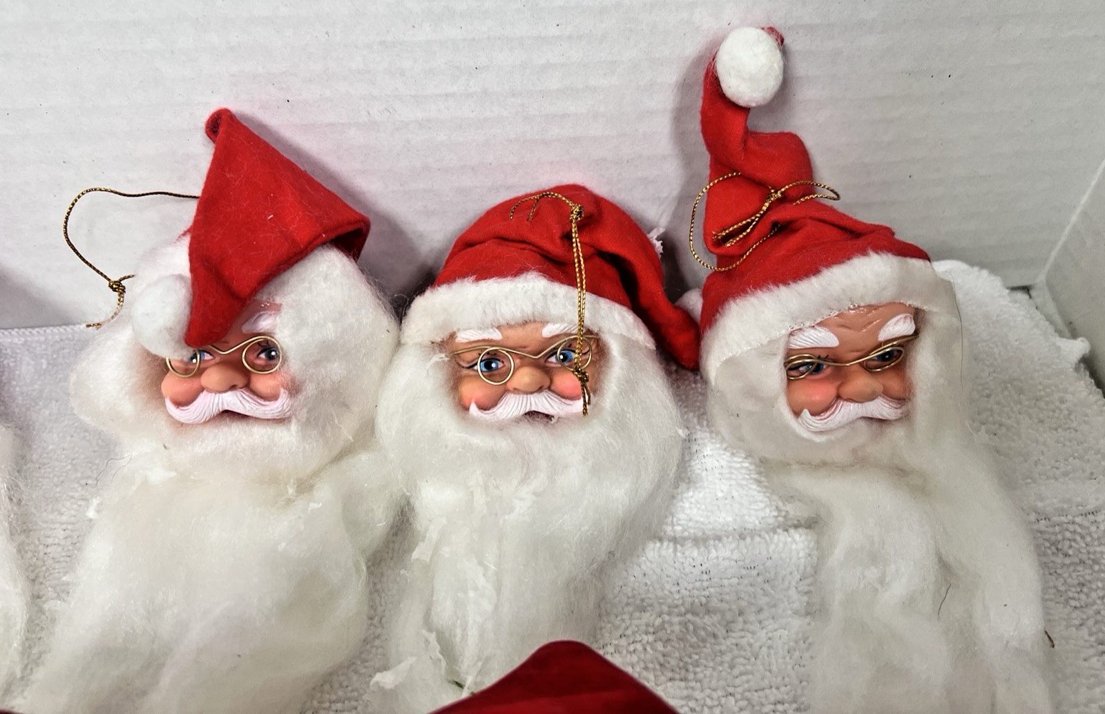 Lot of 13 Santa Heads Soft Rubber + Big White Beards Christmas Ornaments Craft